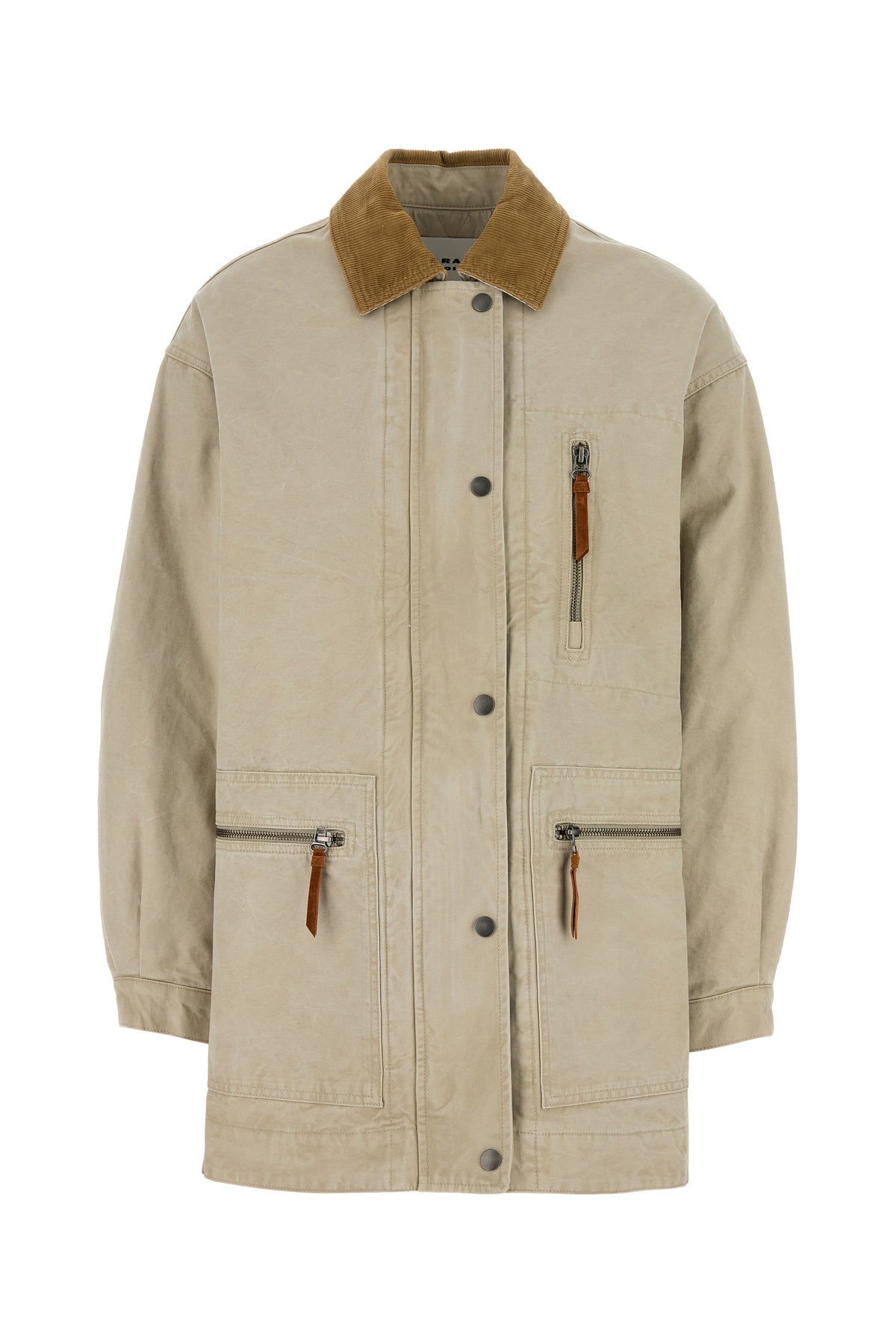 Padded jacket realized in pure cotton canvas characterized by contrasting corduroy collar.