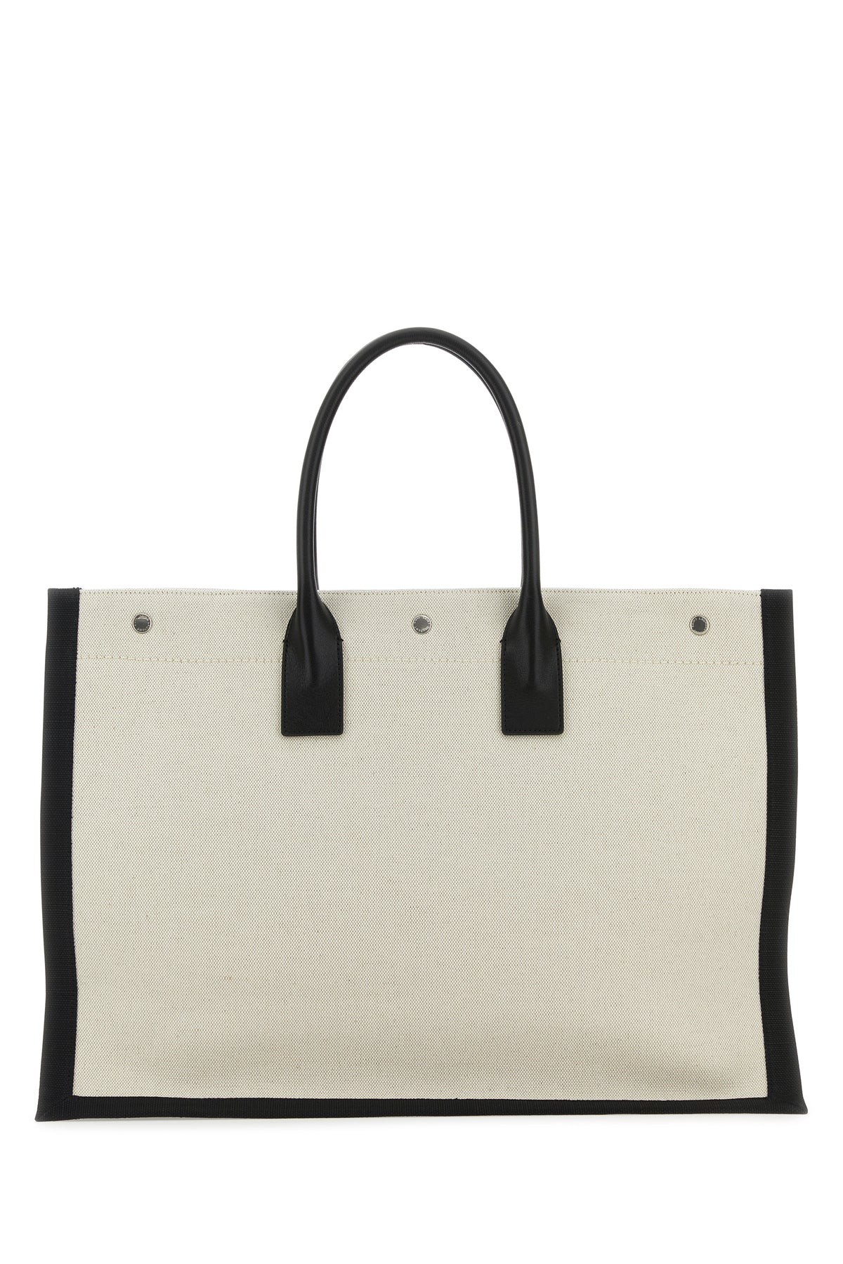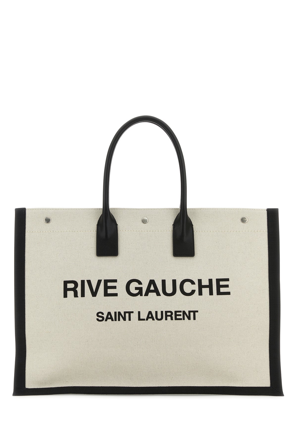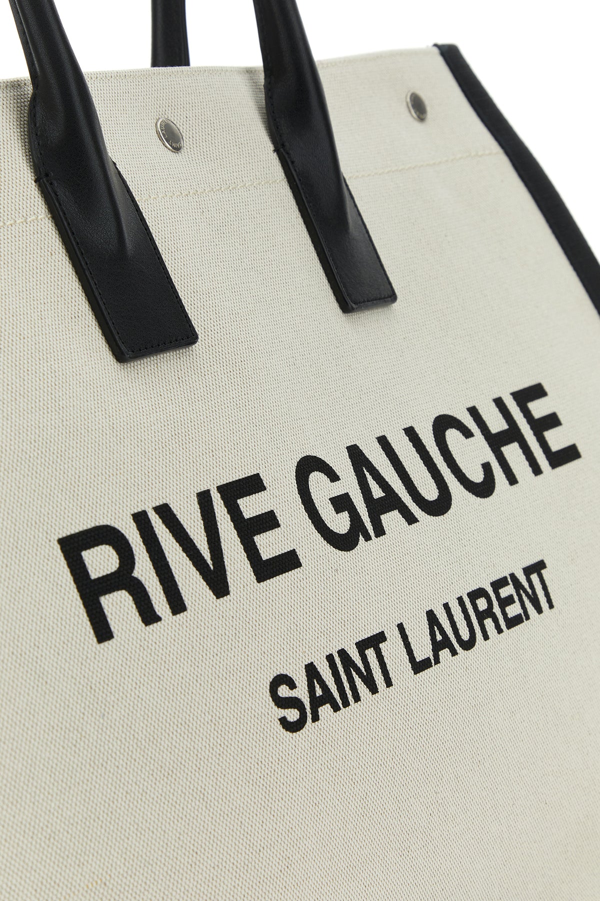 Shopping bag realized in pure linen canvas characterized by Rive Gauche print at the front.