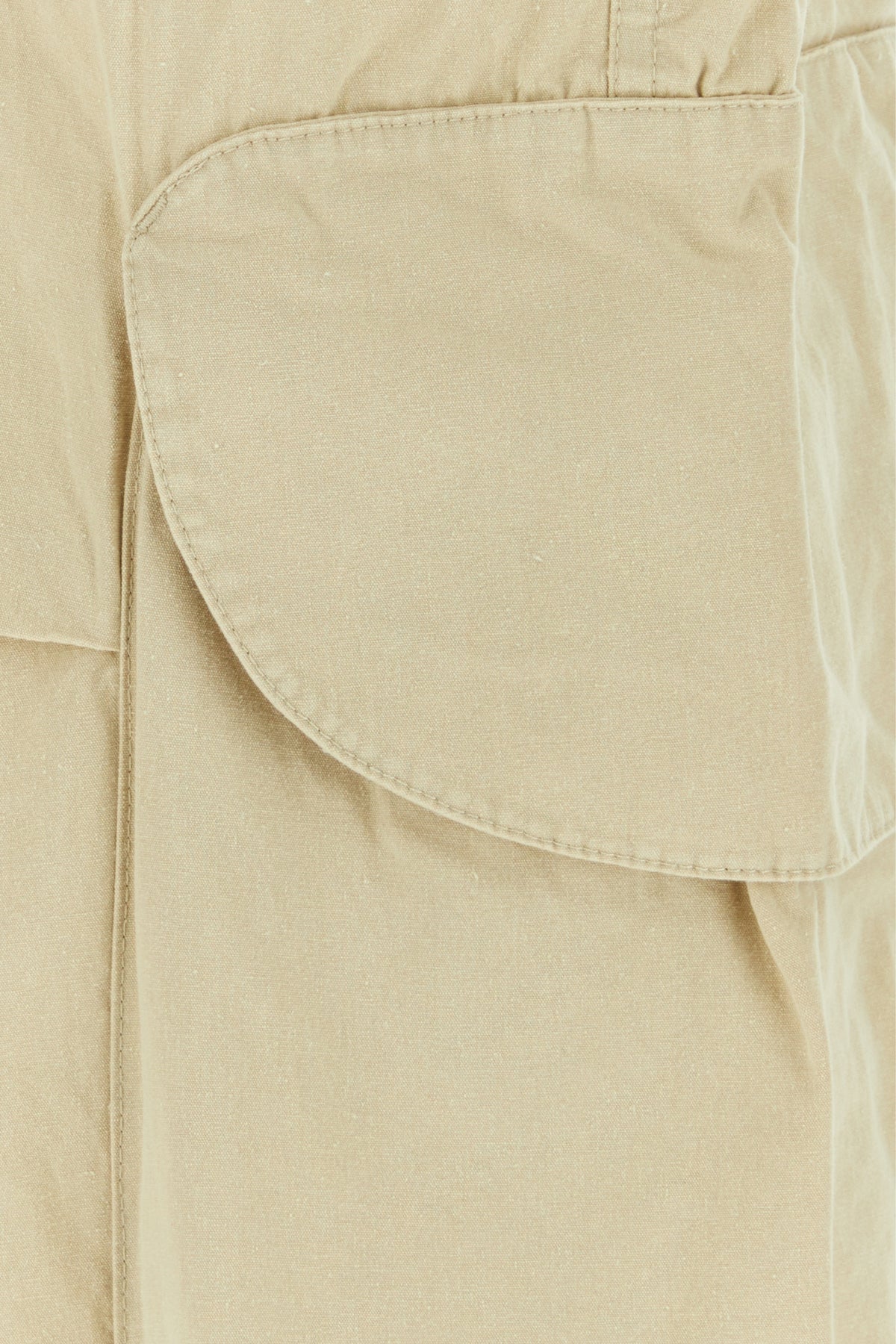 - Seam pockets, two flap pockets on the sides and two flap pockets at the back