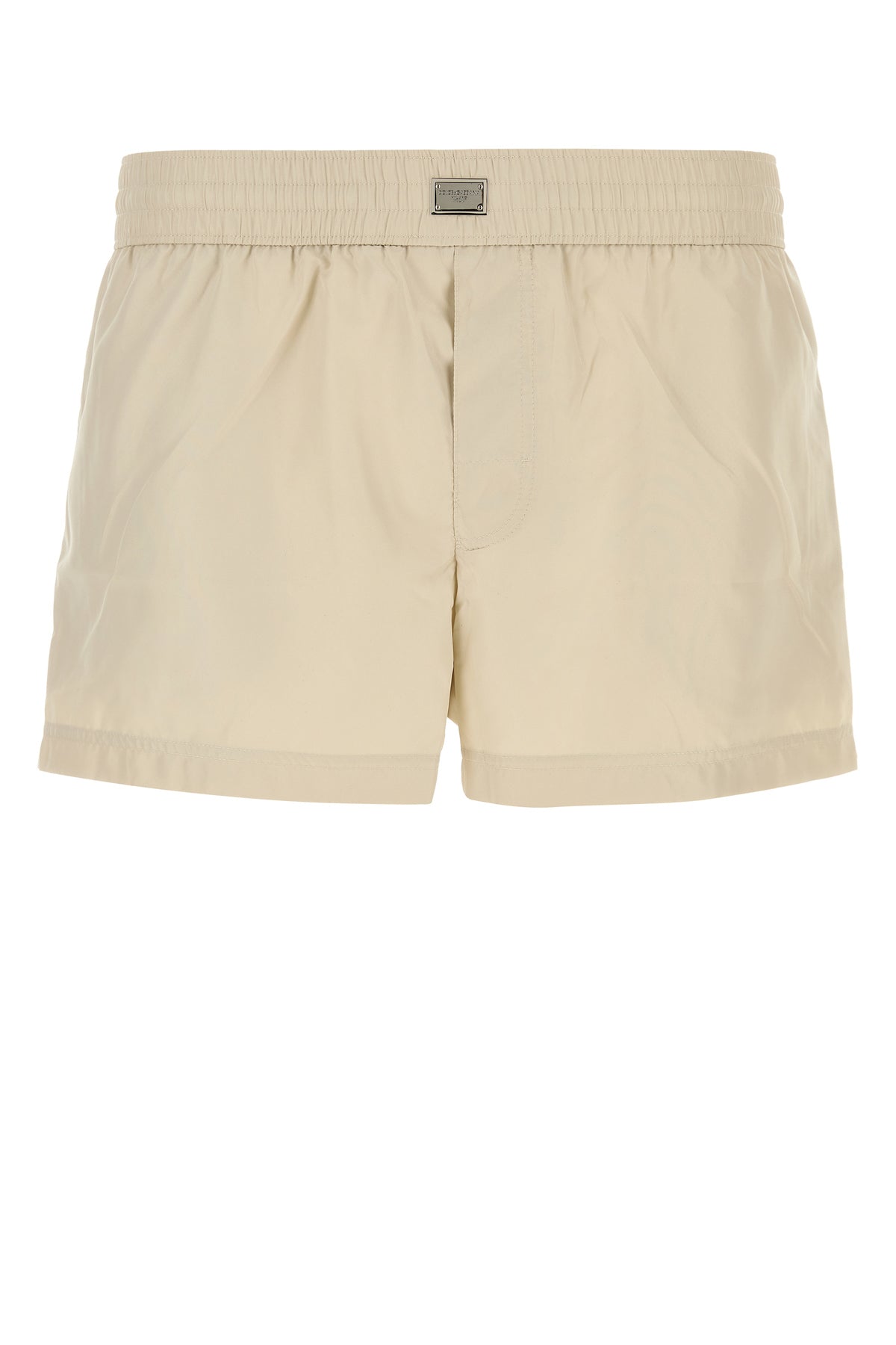 Swimming shorts realized in polyester enriched by metal logoed plate at the front.