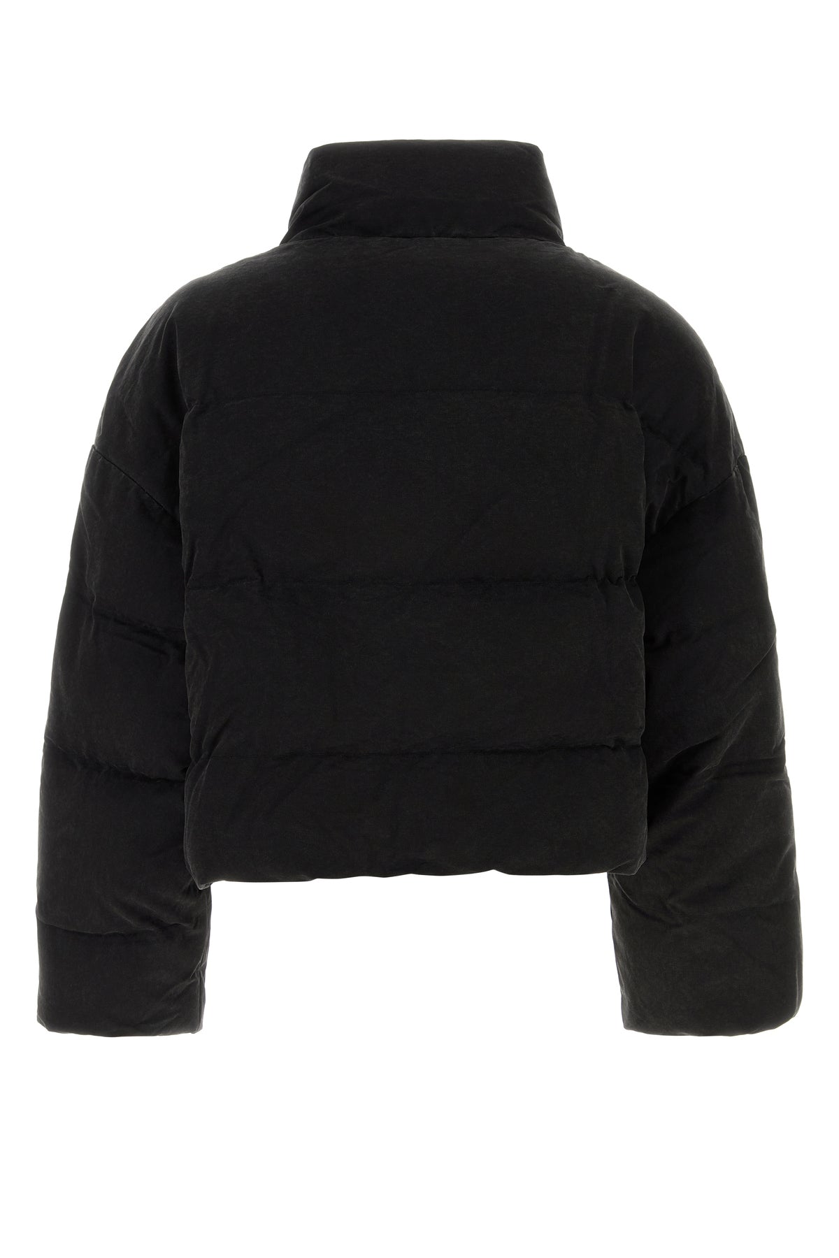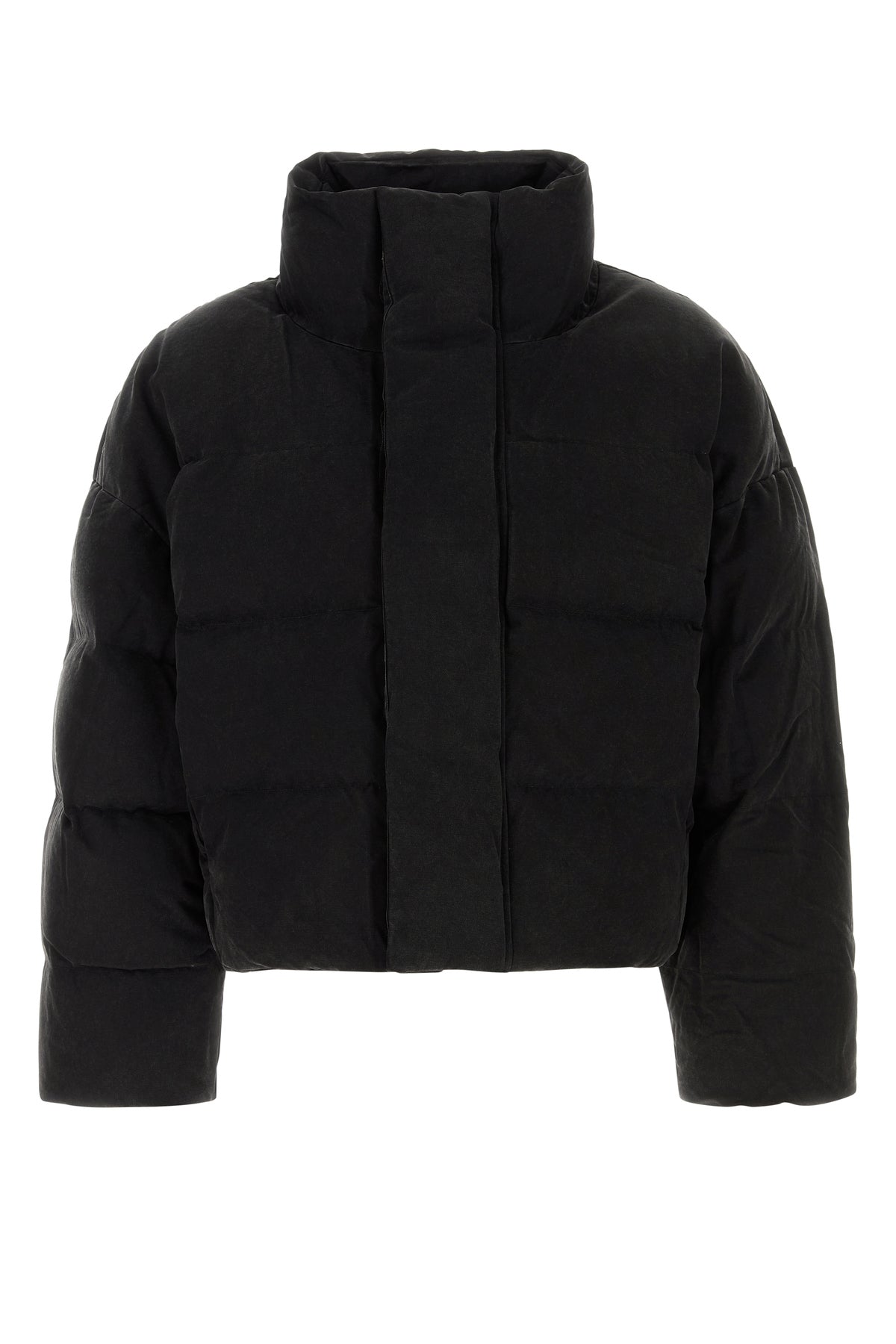 Down jacket realized in quilted pure cotton characterized by high collar.