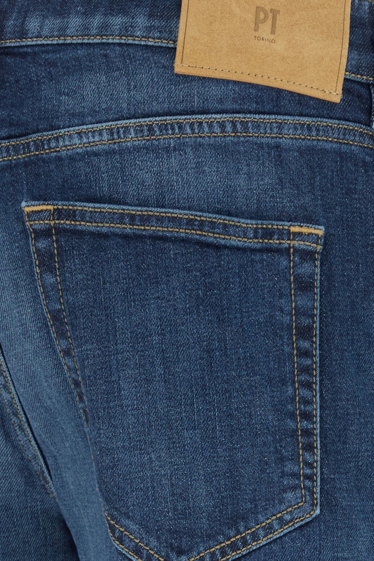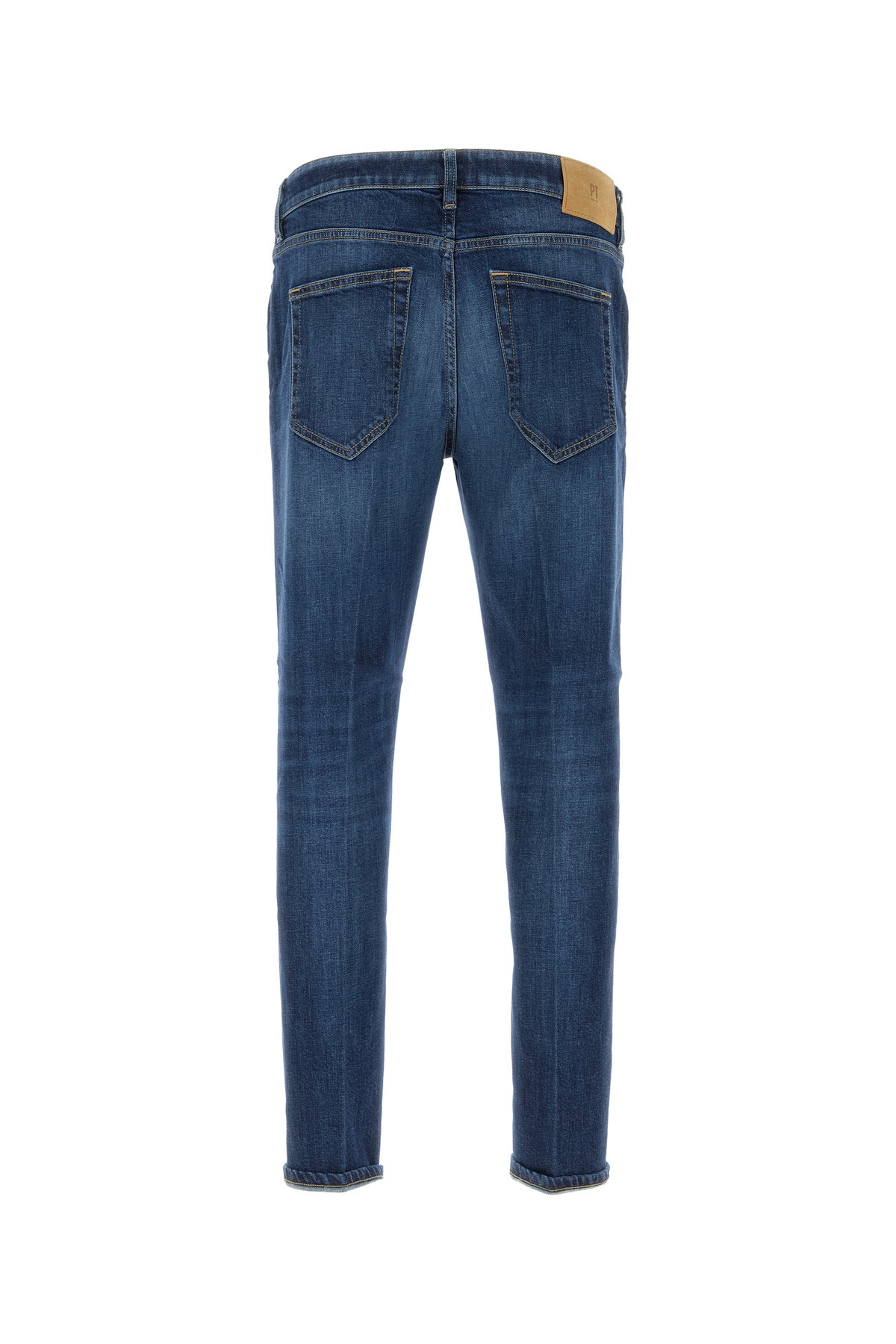 Jeans realized in stretch cotton denim enriched by contrasting logoed label at the back.