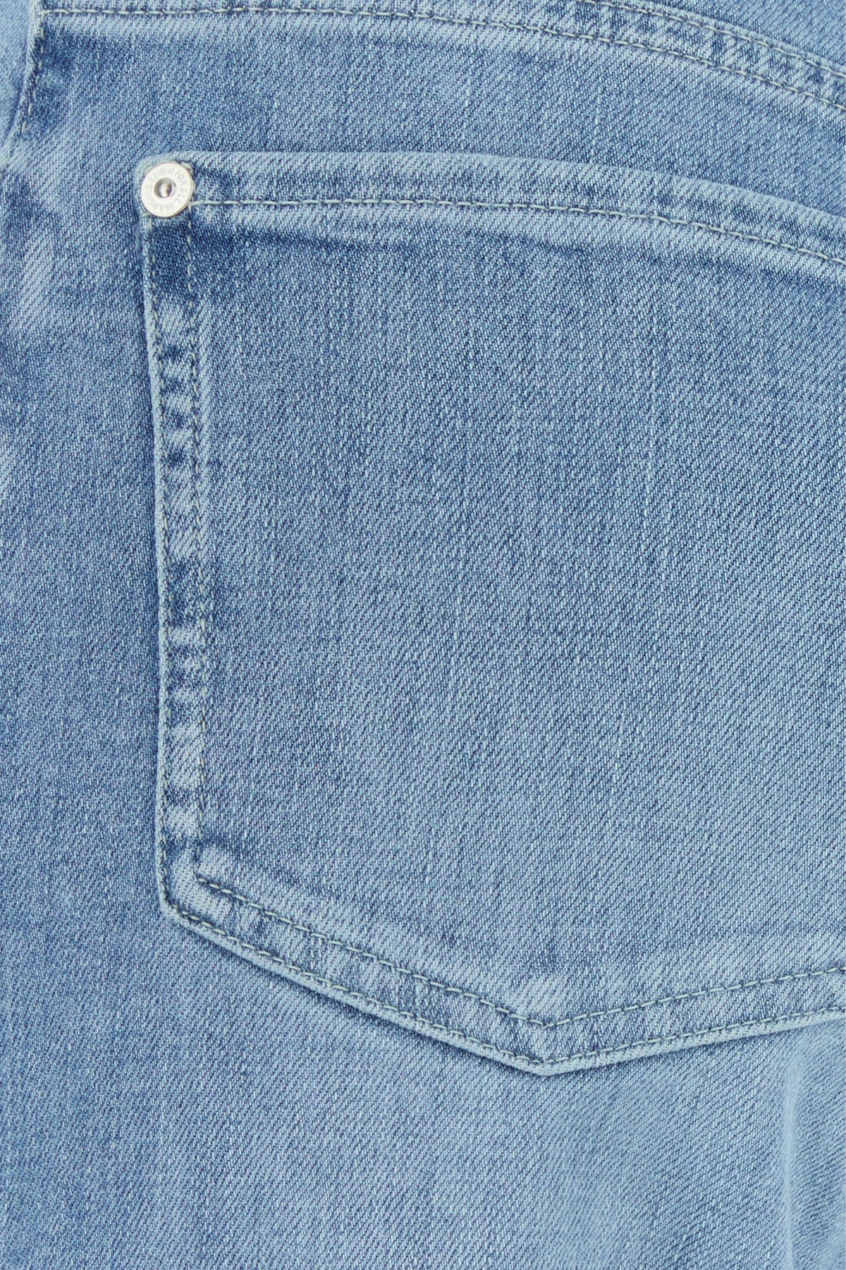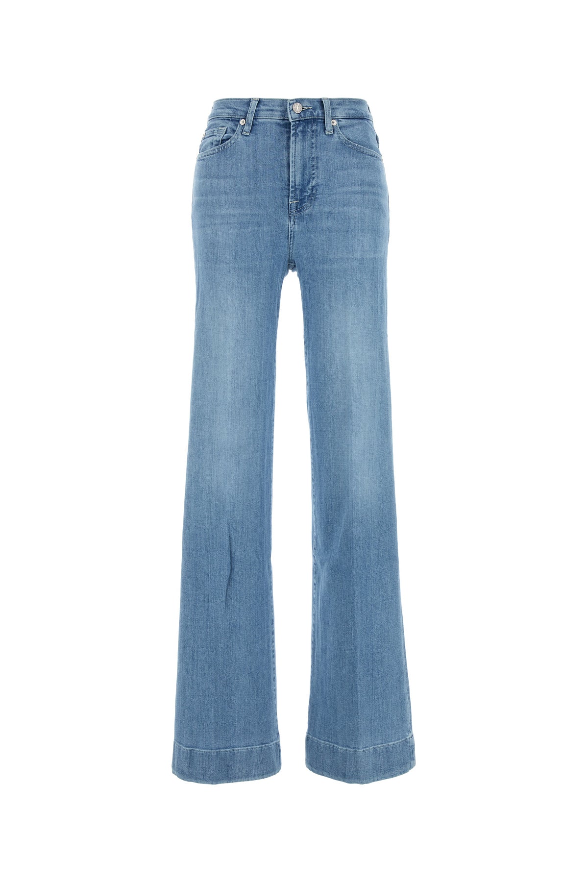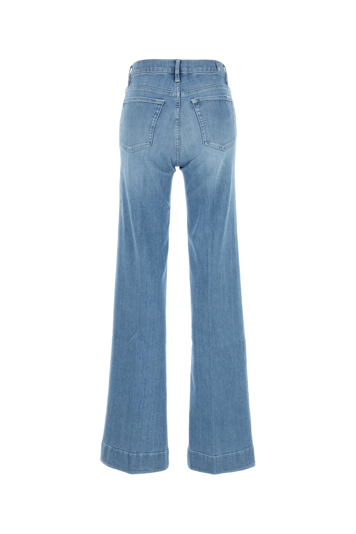 Jeans realized in stretch cotton denim enriched by logoed labels at the back.
