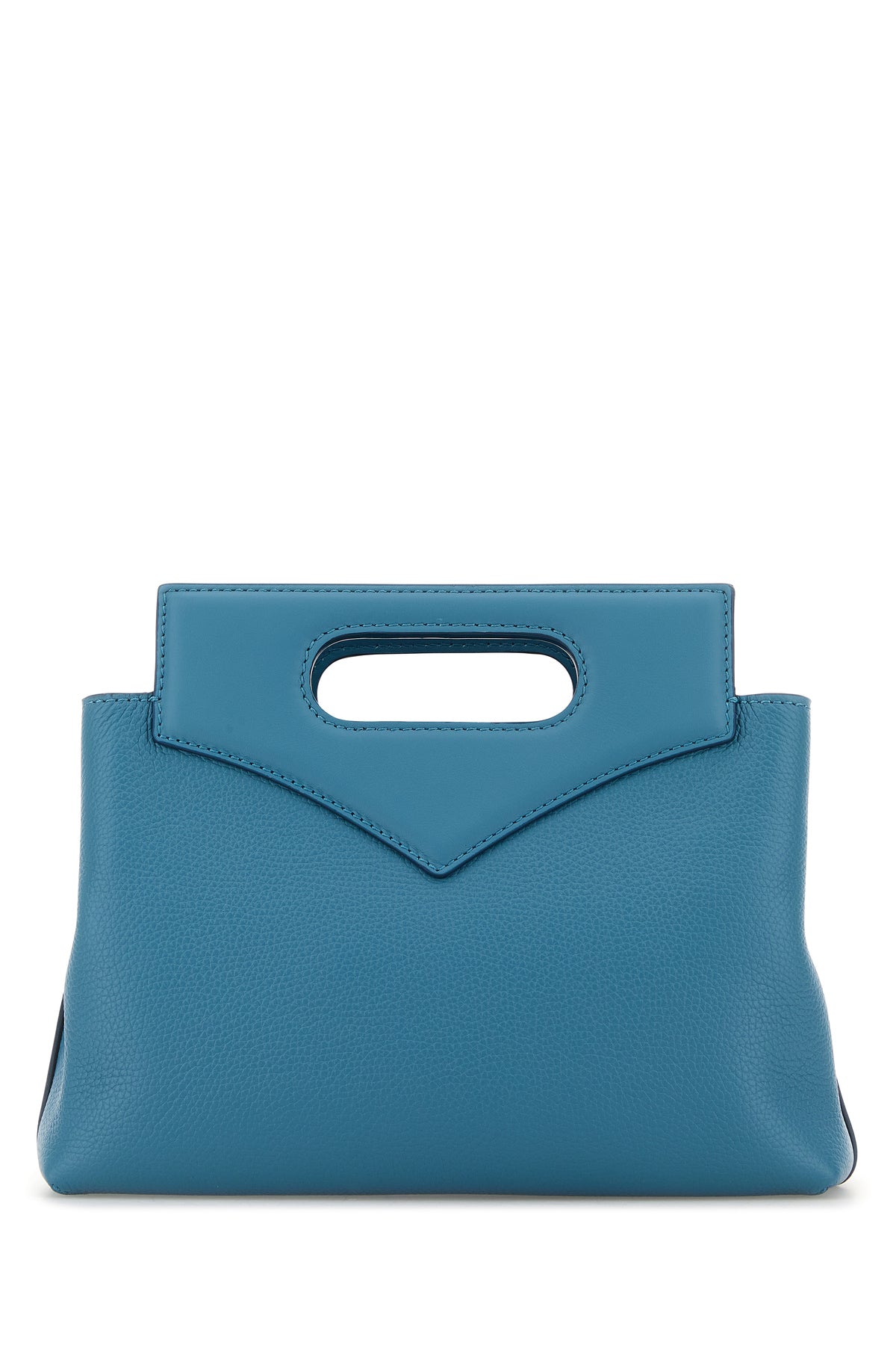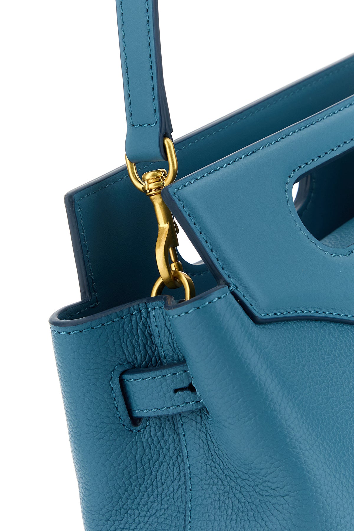 Handbag realized in pebble leather with smooth leather inserts characterized by laminated printed logo at the front.