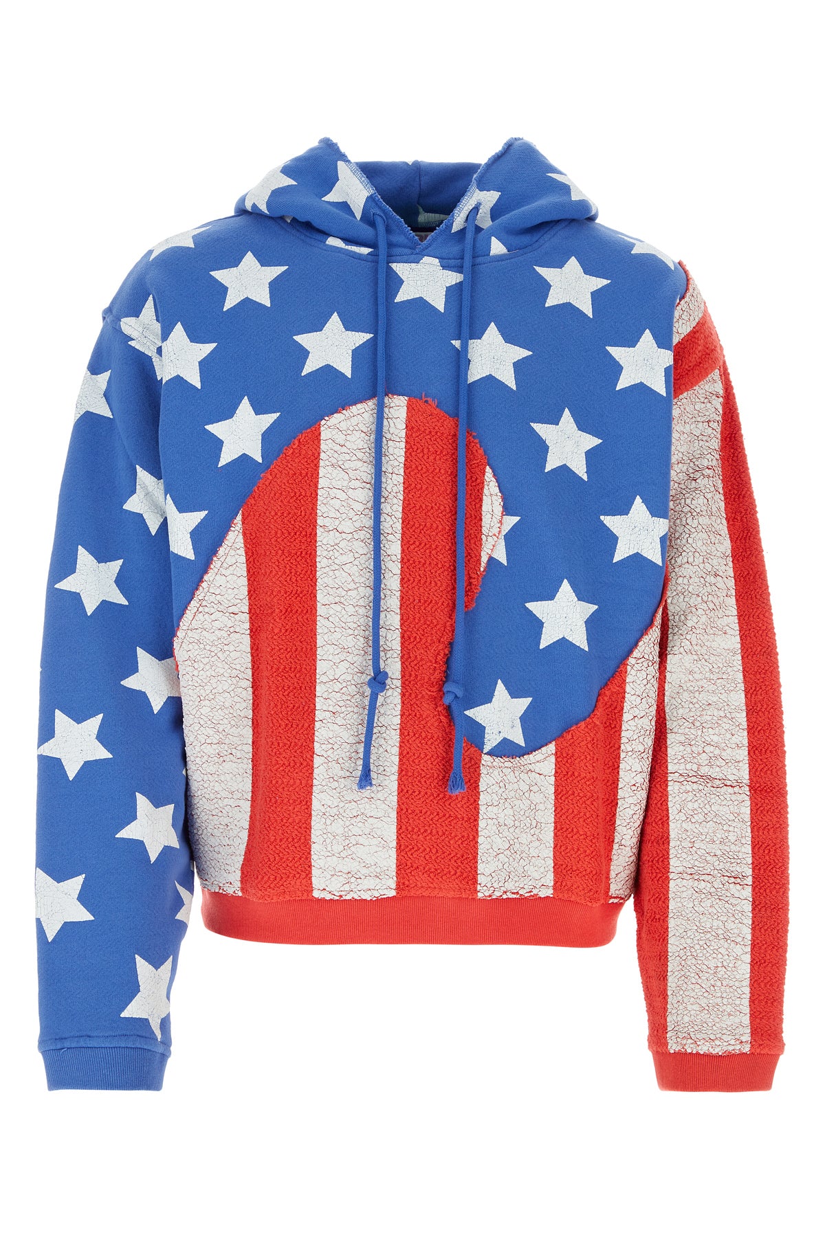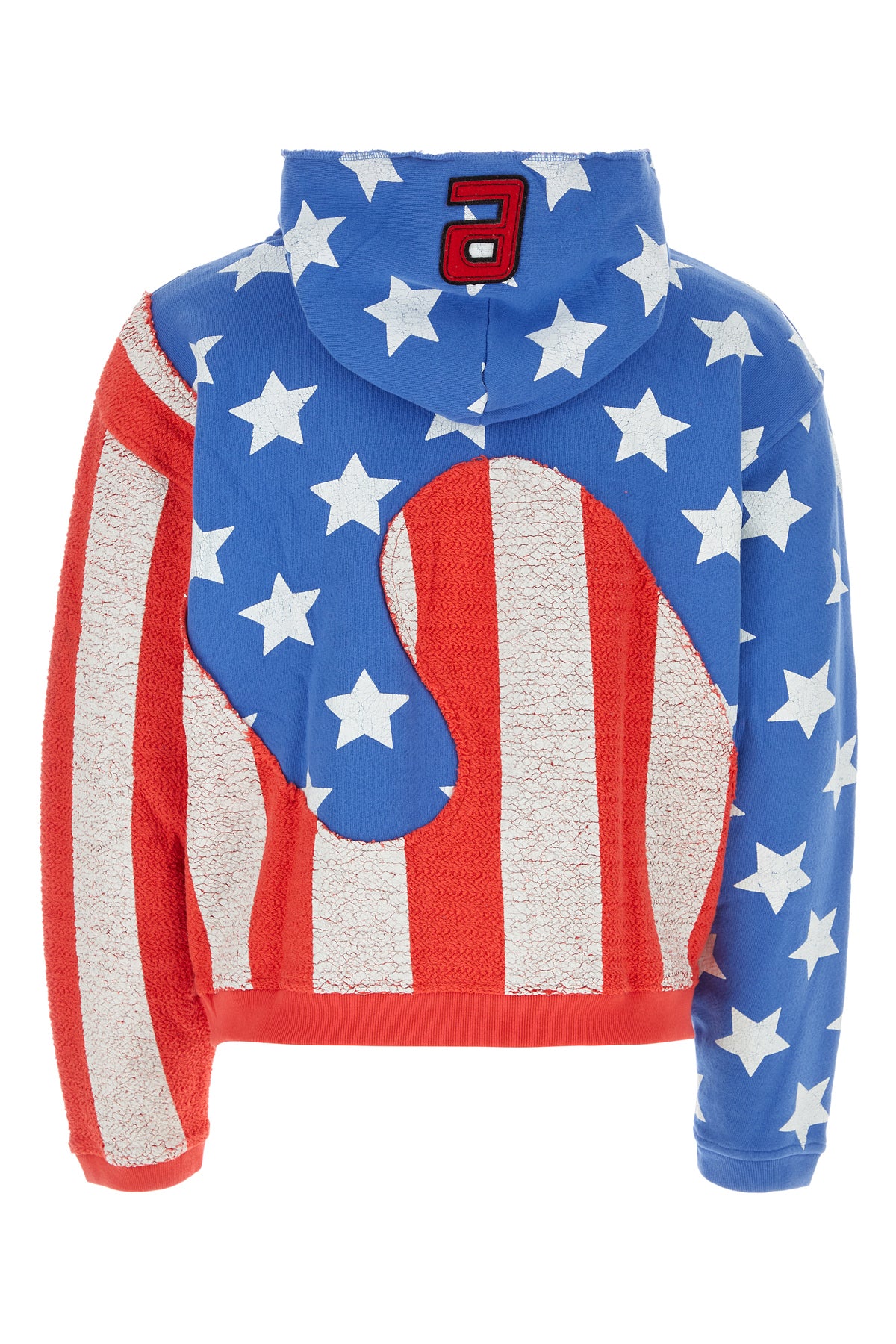 Sweatshirt realized in pure cotton characterized by peculiar print on the entire surface enriched by E patch on the hood-