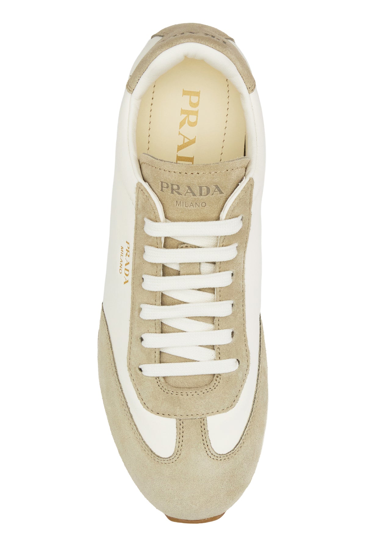Sneakers realized in lamb nappa leather and suede characterized by laminated printed logo on the side and embossed logo on the heel.