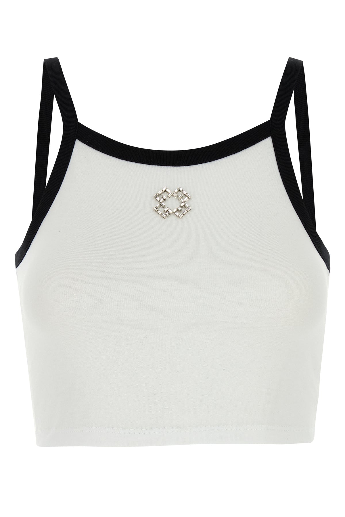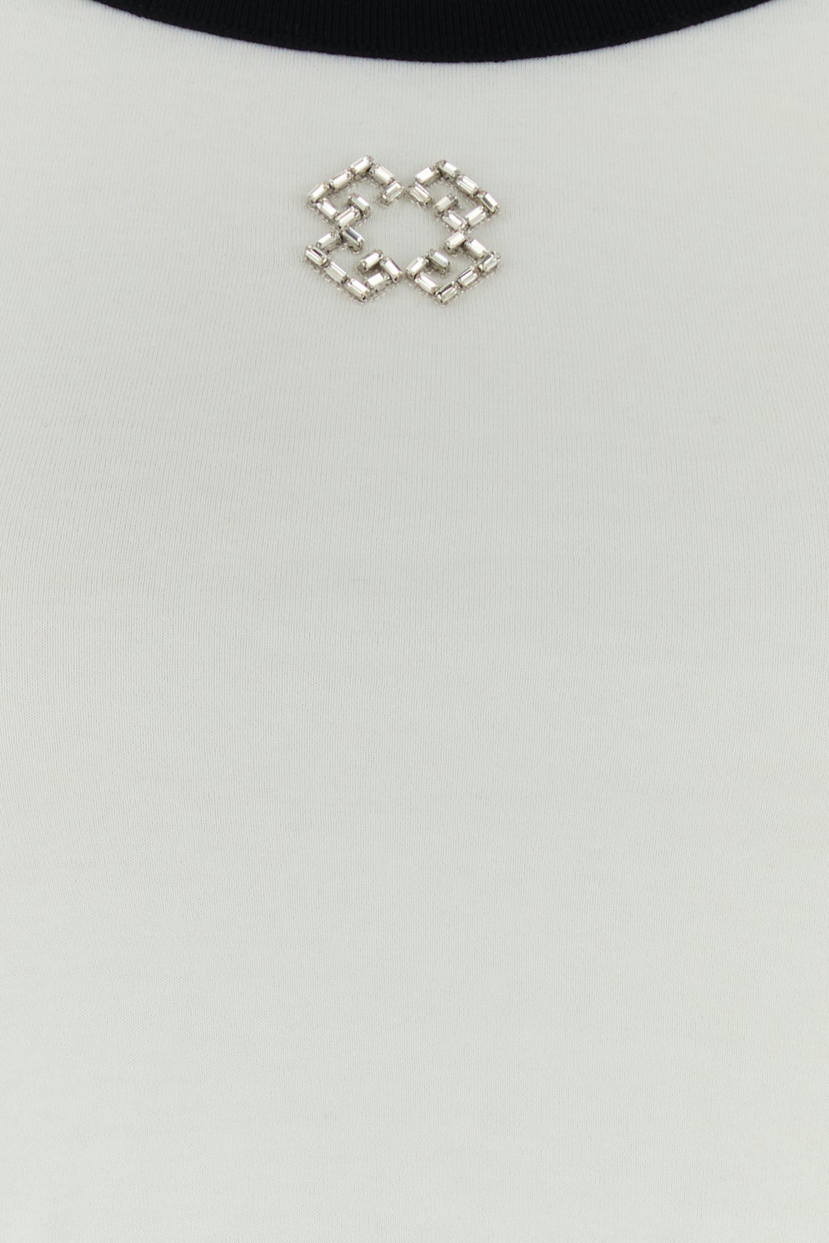 Crop top realized in pure cotton with contrasting fabric trimmings enriched by 4G rhinestones detail at the front.