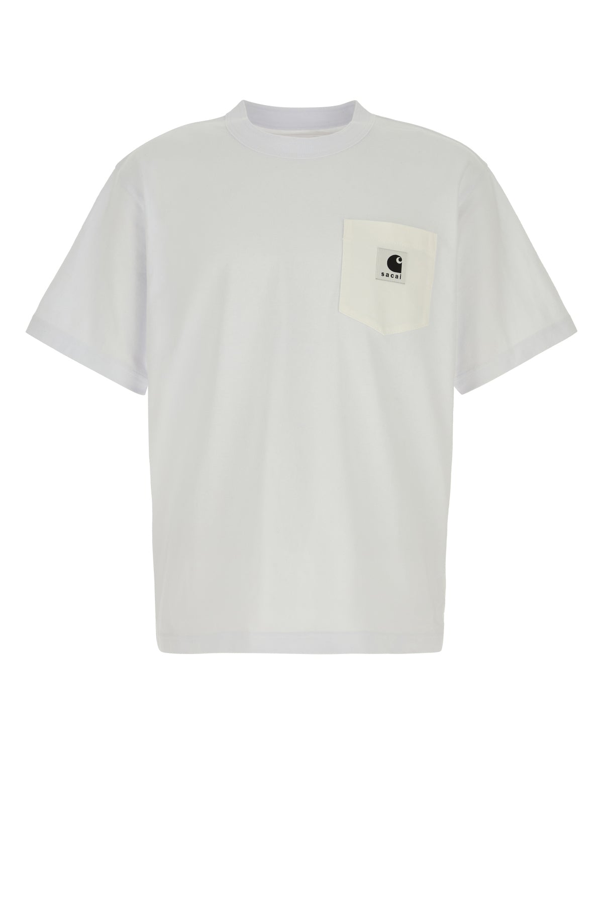 T-shirt realized in pure cotton enriched by contrasting Sacai x Carhartt WIP label on the chest.