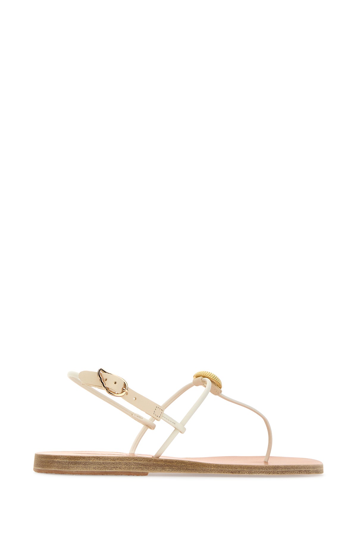 Thong sandals realized in smooth leather characterized by adjustable ankle strap closure enriched by metal detail at the front.