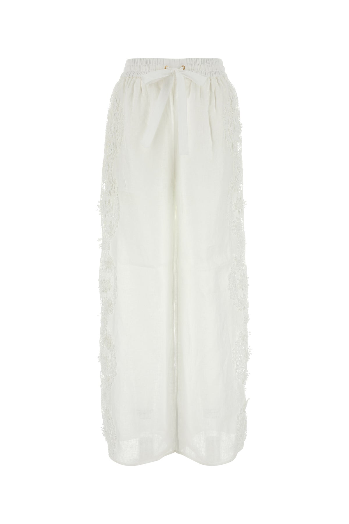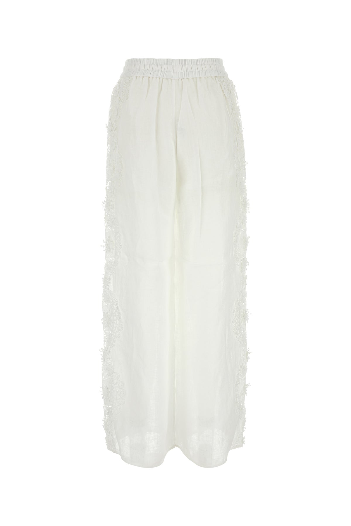 Palazzo pant realized in pure linen enriched by tonal lace inserts on the sides.