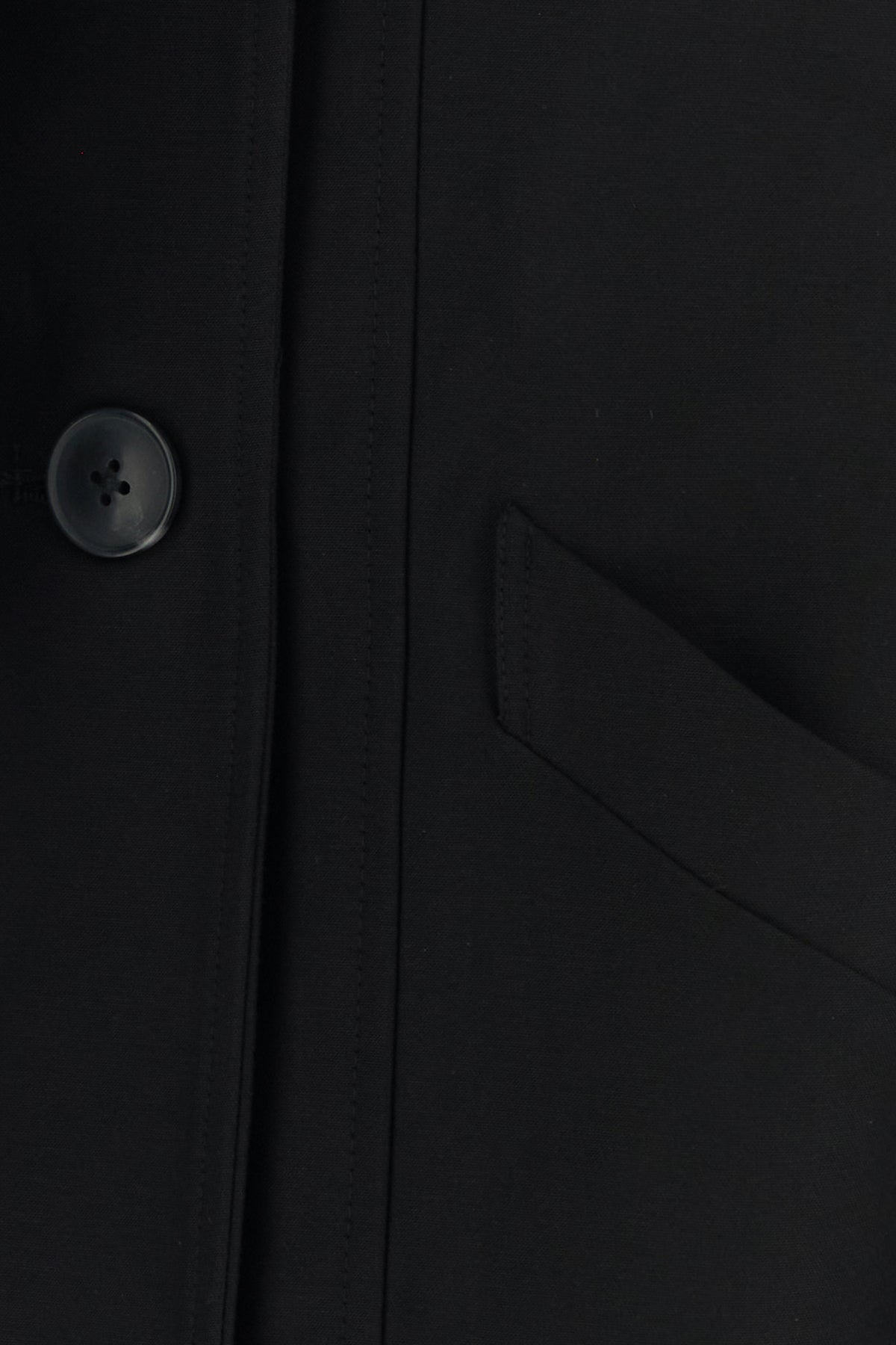Short-cut coat realized in pure cotton enriched by scarf at the neck.