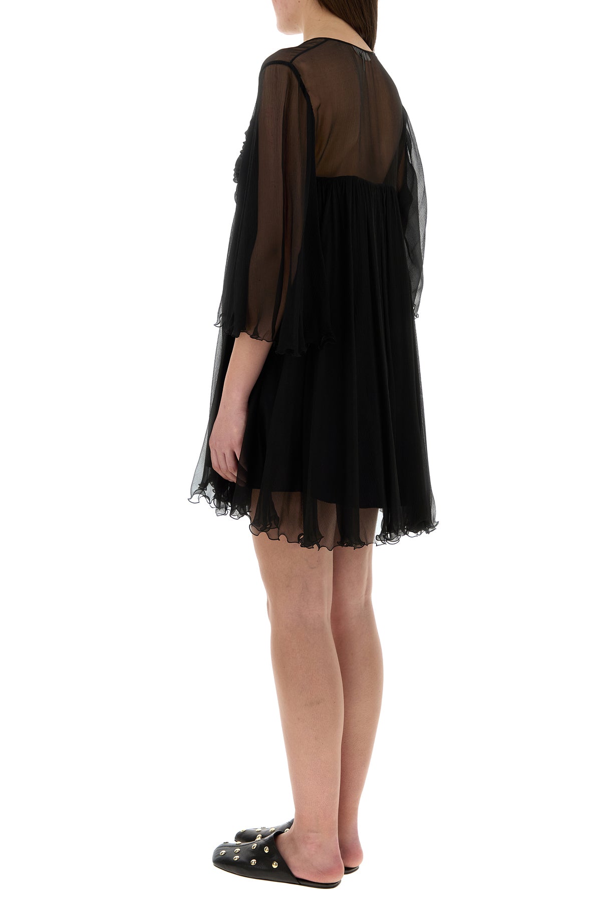 Mini dress realized in pure silk georgette characterized by laces to tie on the neck.