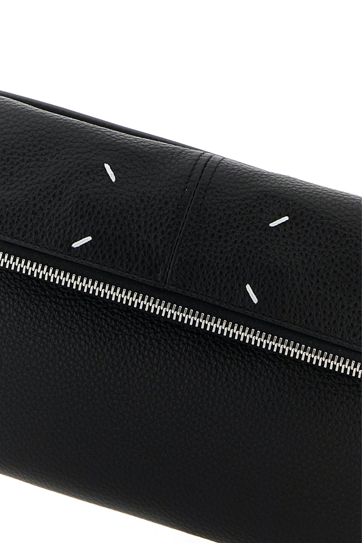 Clutch realized in pebble calf leather characterized by iconic contrasting stitching at the front.