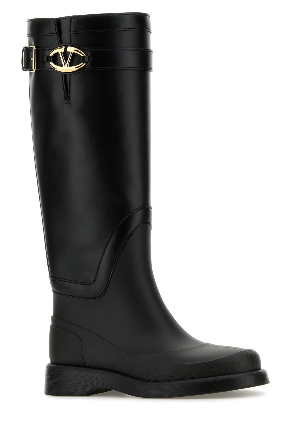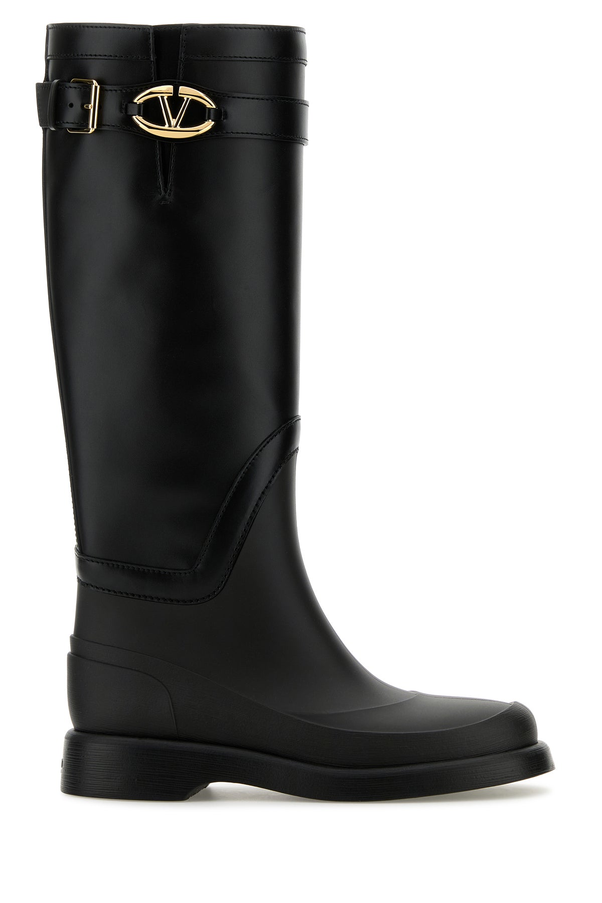 Boots realized in smooth leather and rubber enriched by decorative strap with Vlogo metal detail on the side.