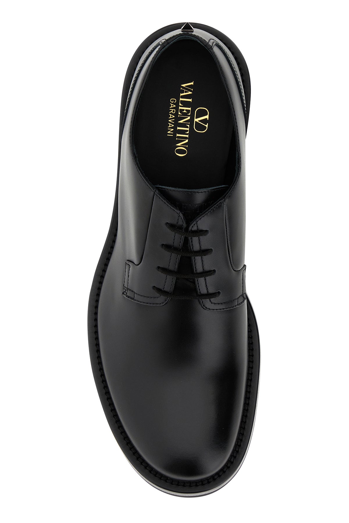 Lace-up shoes realized in leather characterized by tonal metal stud at the back.