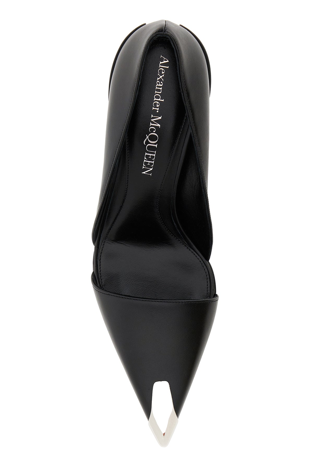 Pumps realized in smooth leather from a polished finish characterized by metal toe.