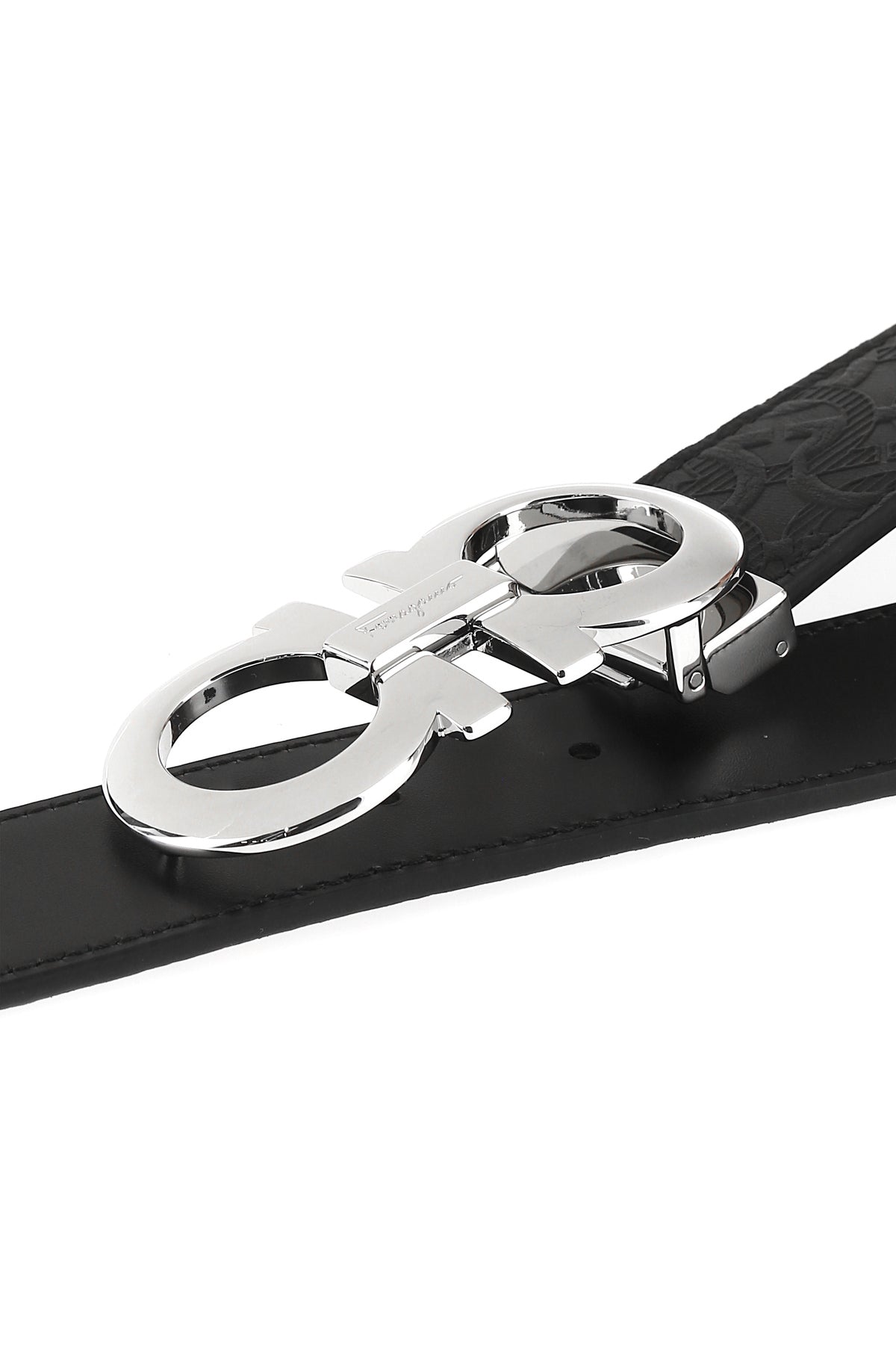 Belt realized in Gancini motif embossed calf leather characterized by metal Ganicini buckle.