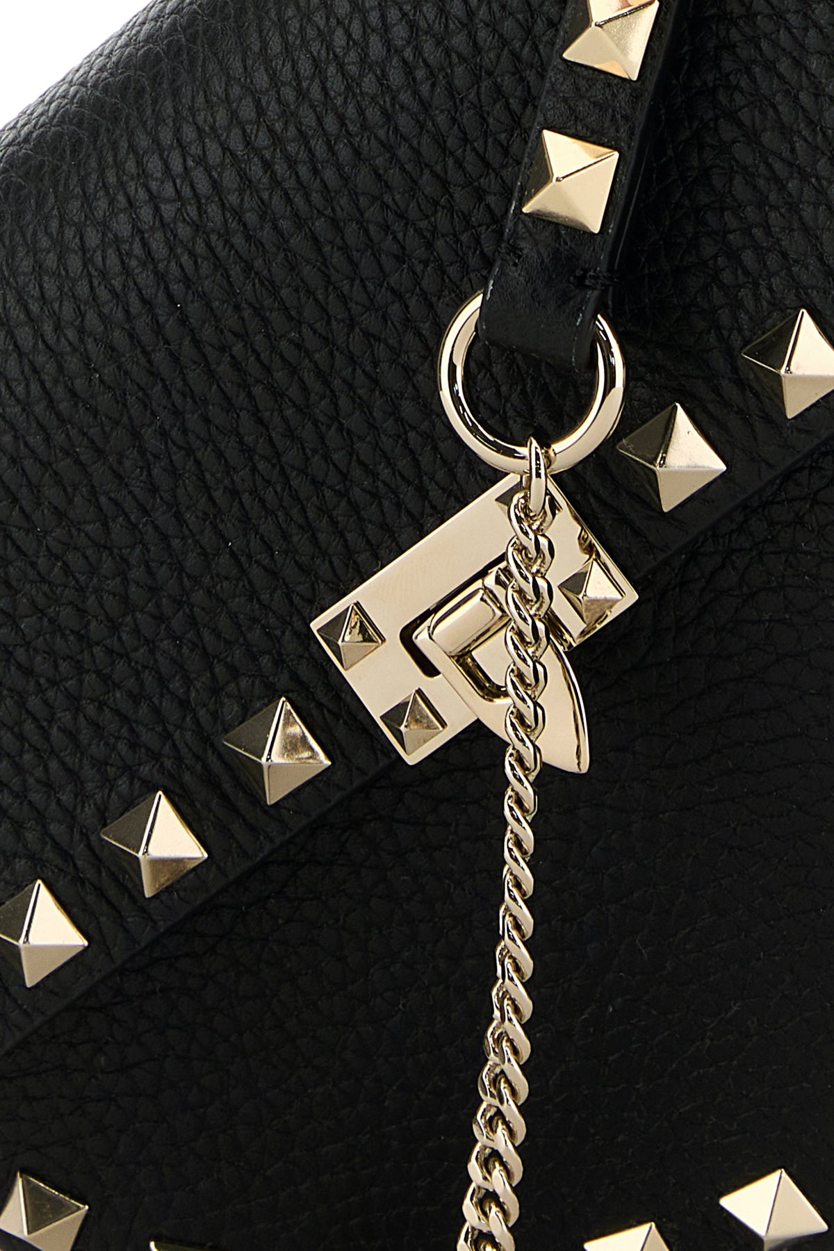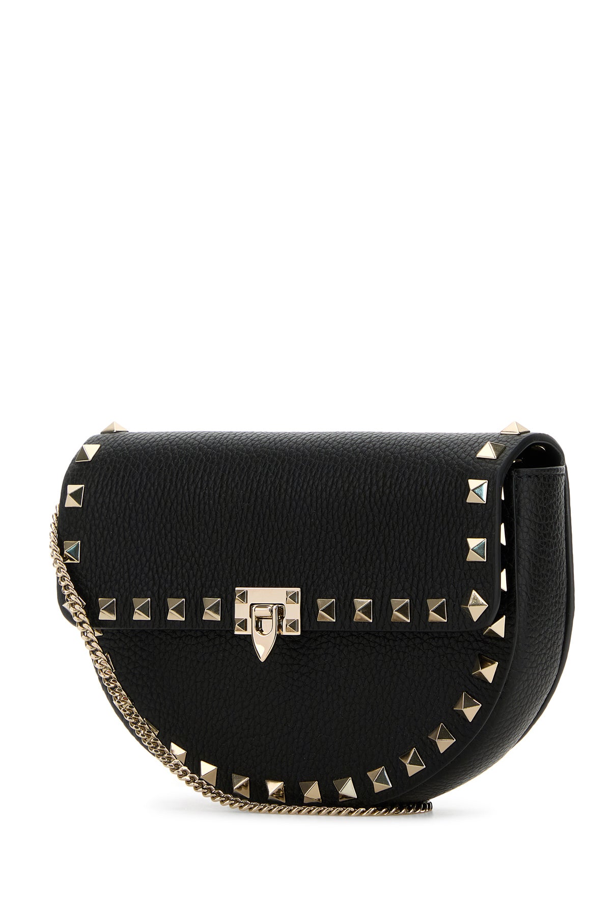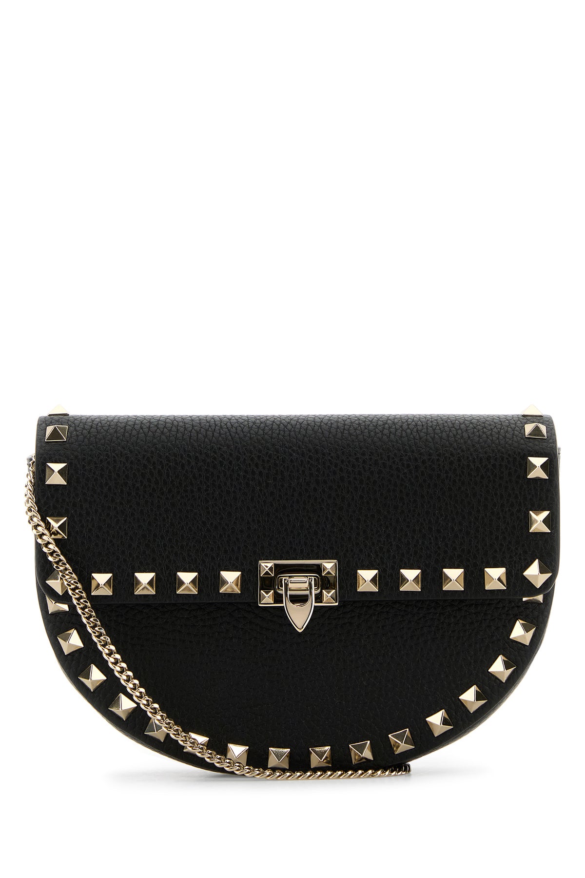 Crossbody bag realized in pebble calf leather characterized by printed logo at the back enriched by metal studs on the trimmings.