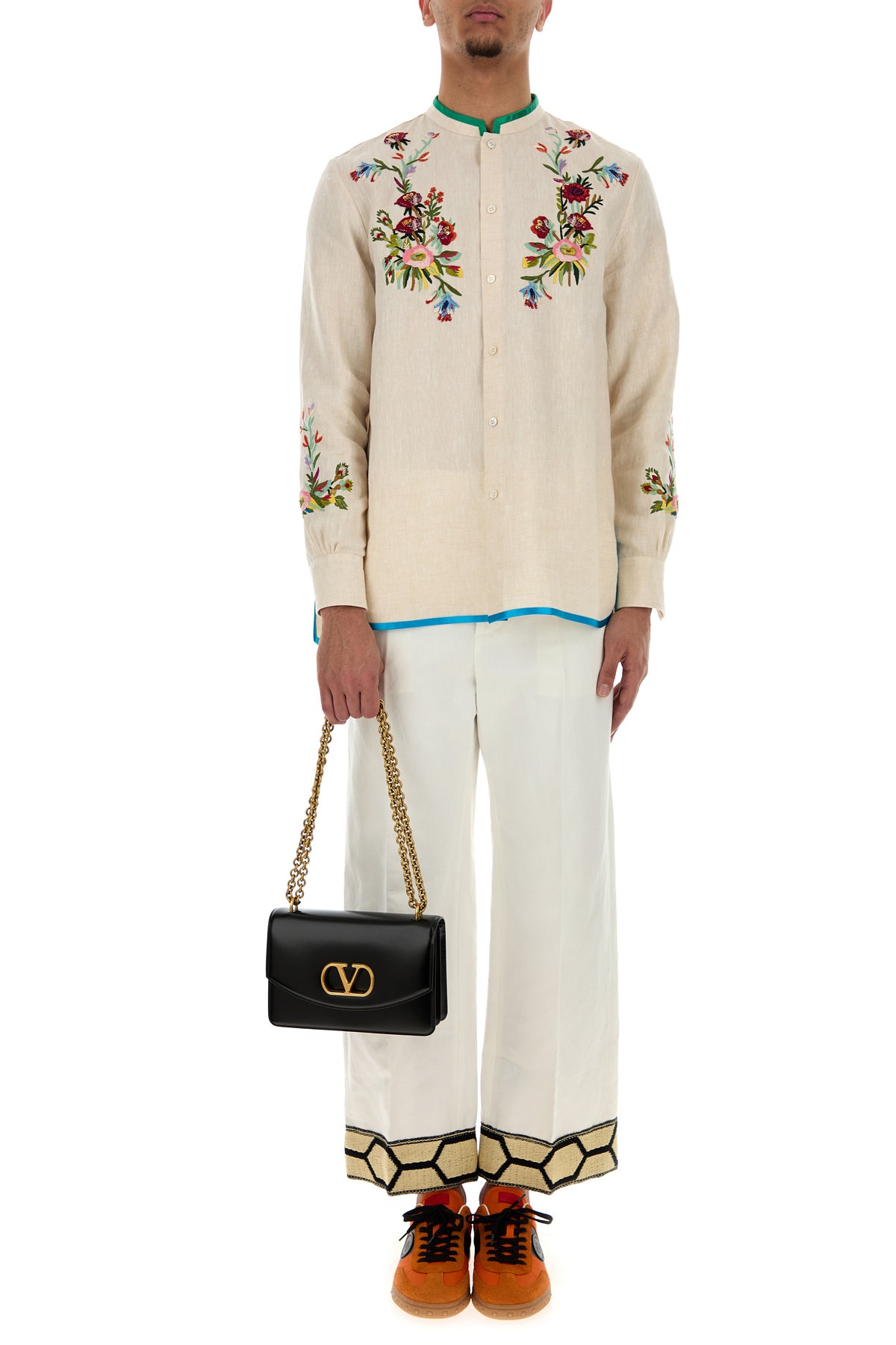 Shoulder bag realized in smooth calf leather enriched by metal VLogo detail at the front.