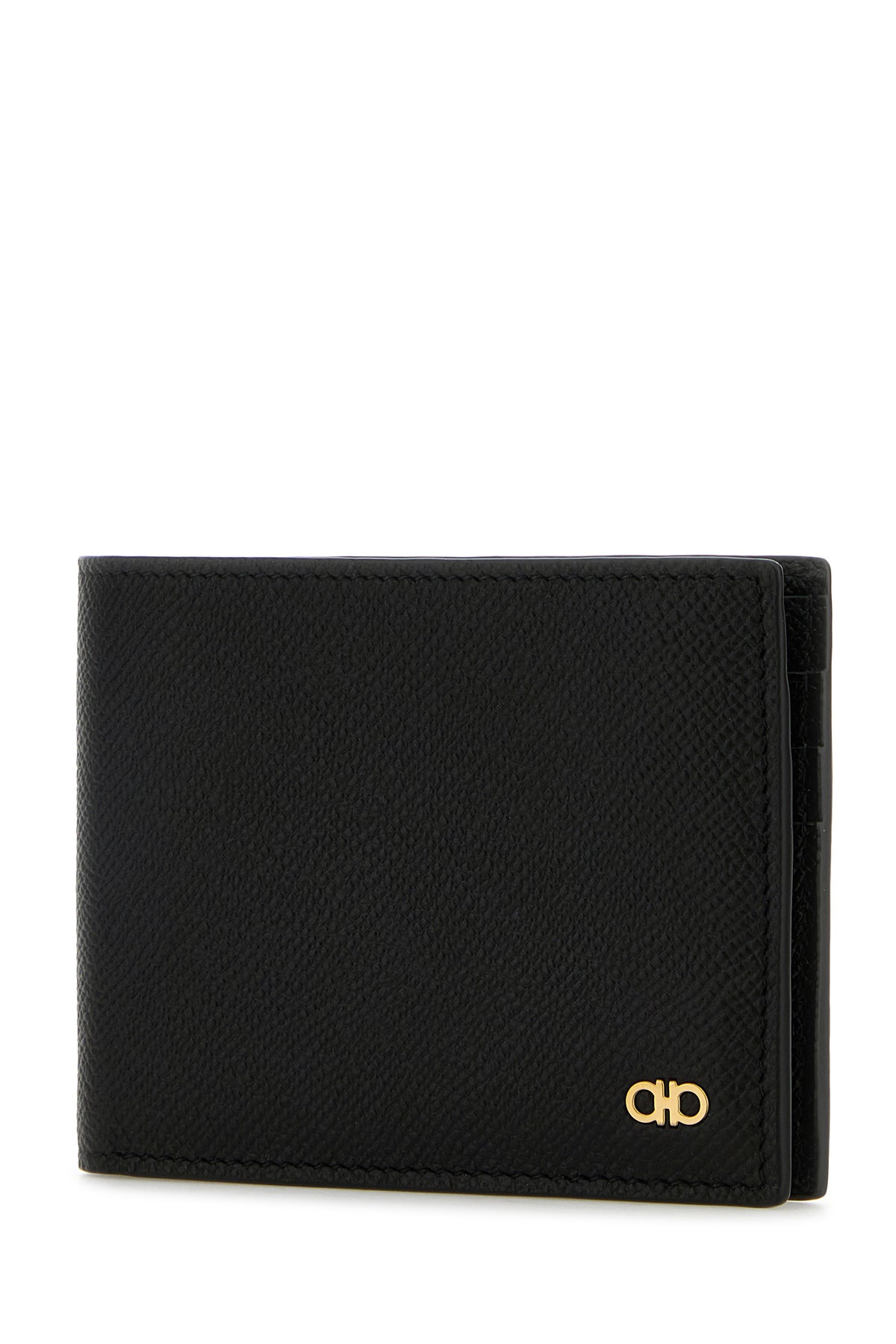 Wallet realized in grained leather enriched by metal Gancini detail at the front.
