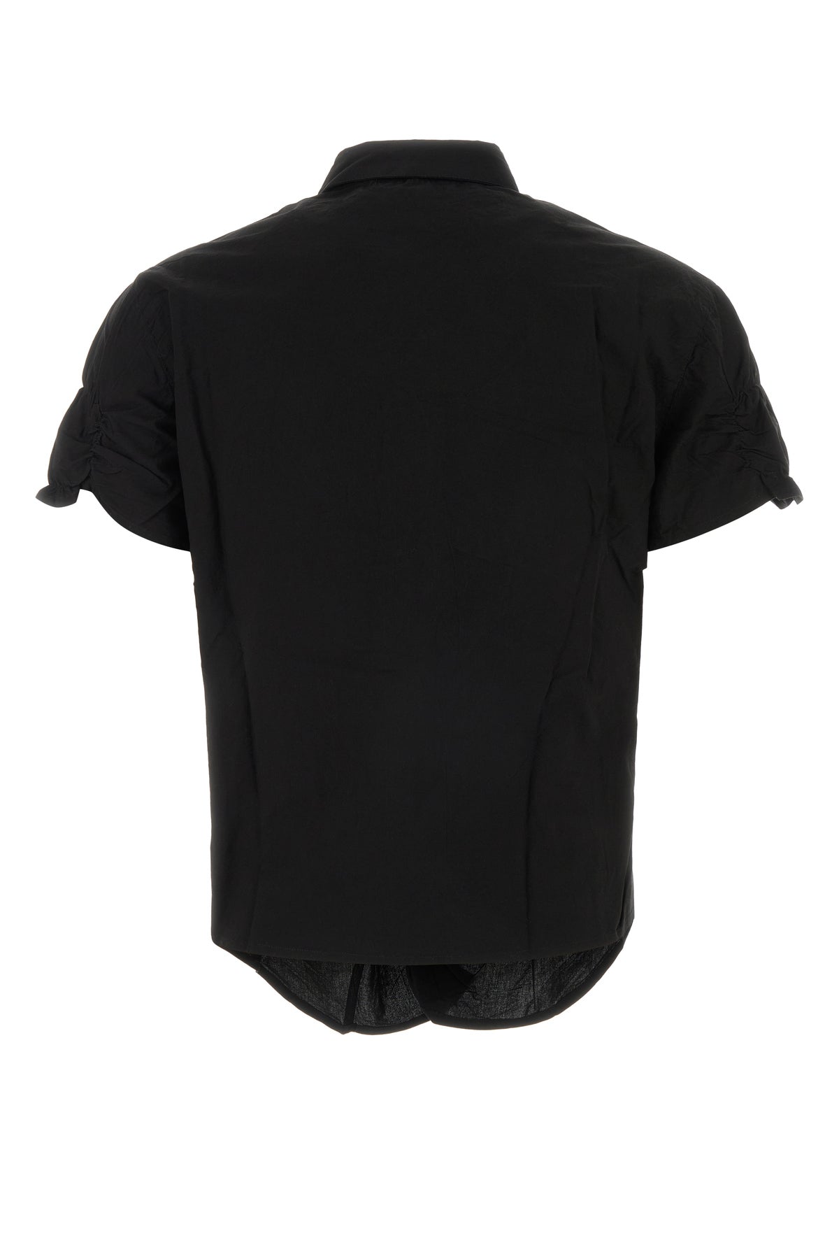 Short-sleeves shirt realized in pure cotton poplin characterized by peculiar gatherings at the front.