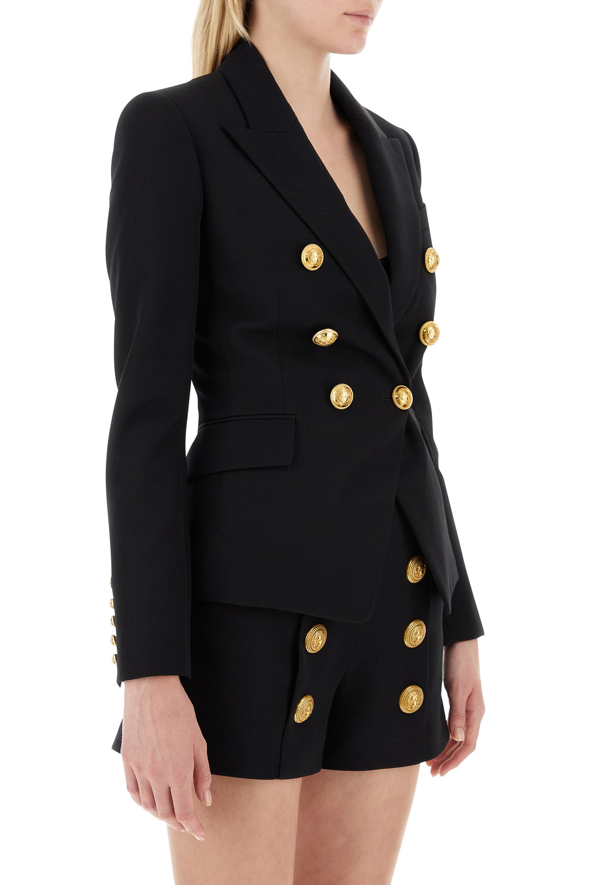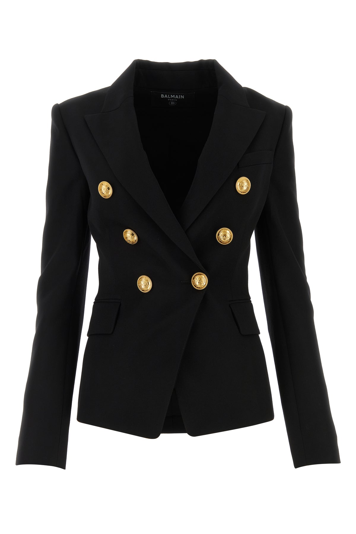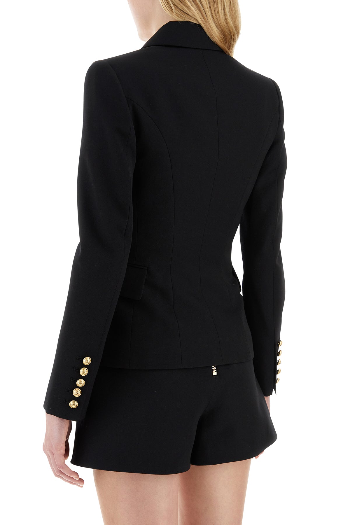 Blazer realized in pure virgin wool twill enriched by metal logoed buttons.