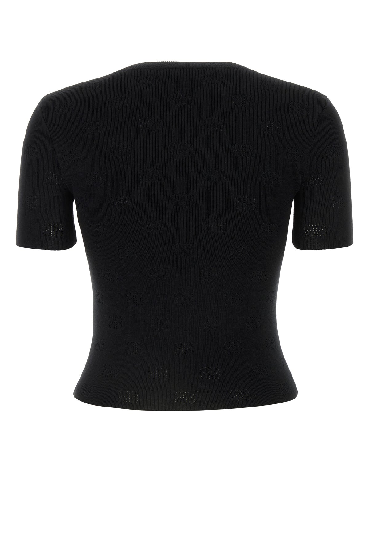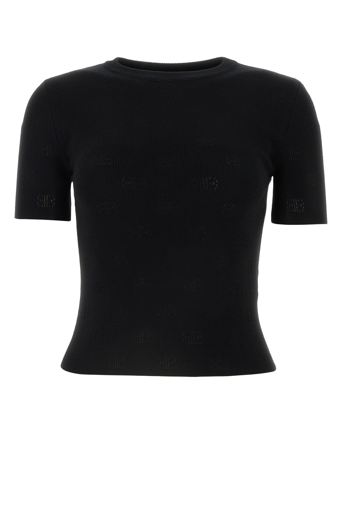 Short-sleeves sweater realized in wool blend characterized by perforated logo on the entire surface.