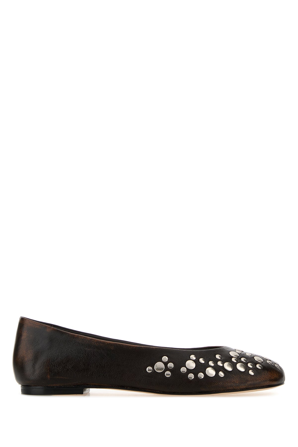 Ballerinas realized in vintage-effect leather enriched by metal studs at the front.