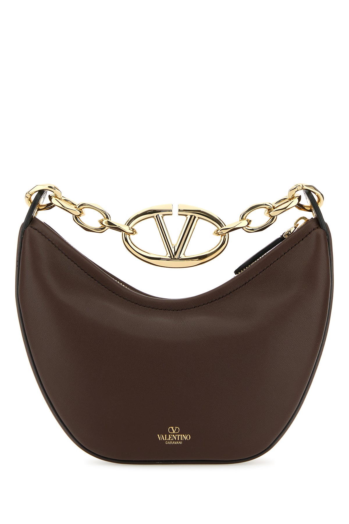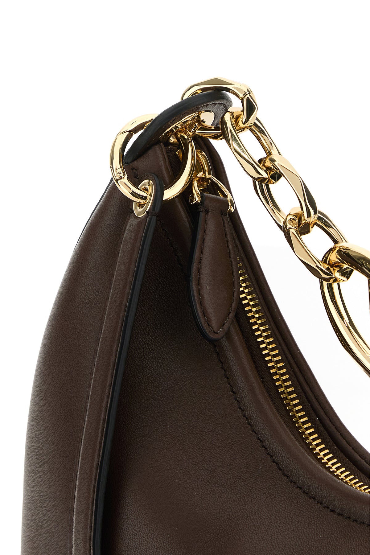 Handbag realized in smooth calf leather characterized by contrasting printed logo at the back.