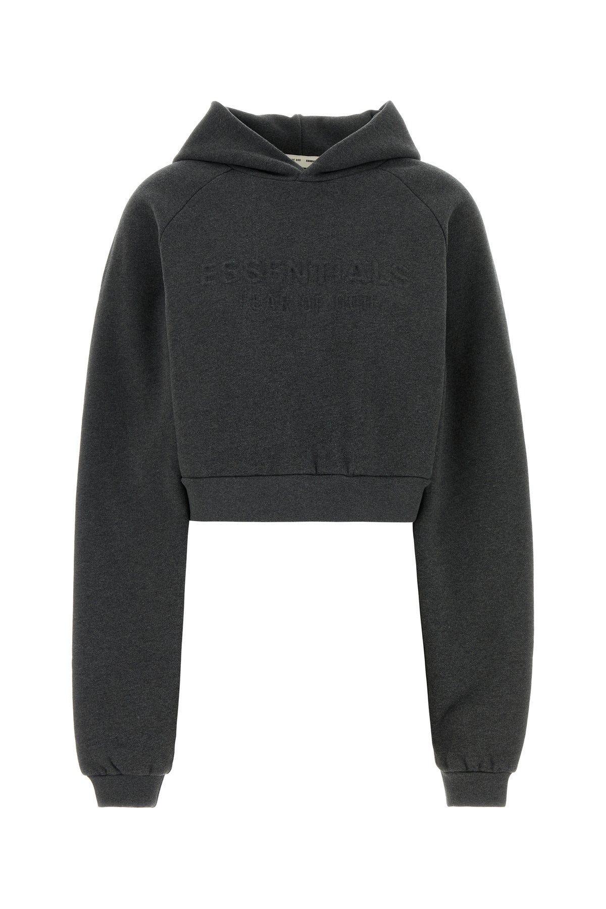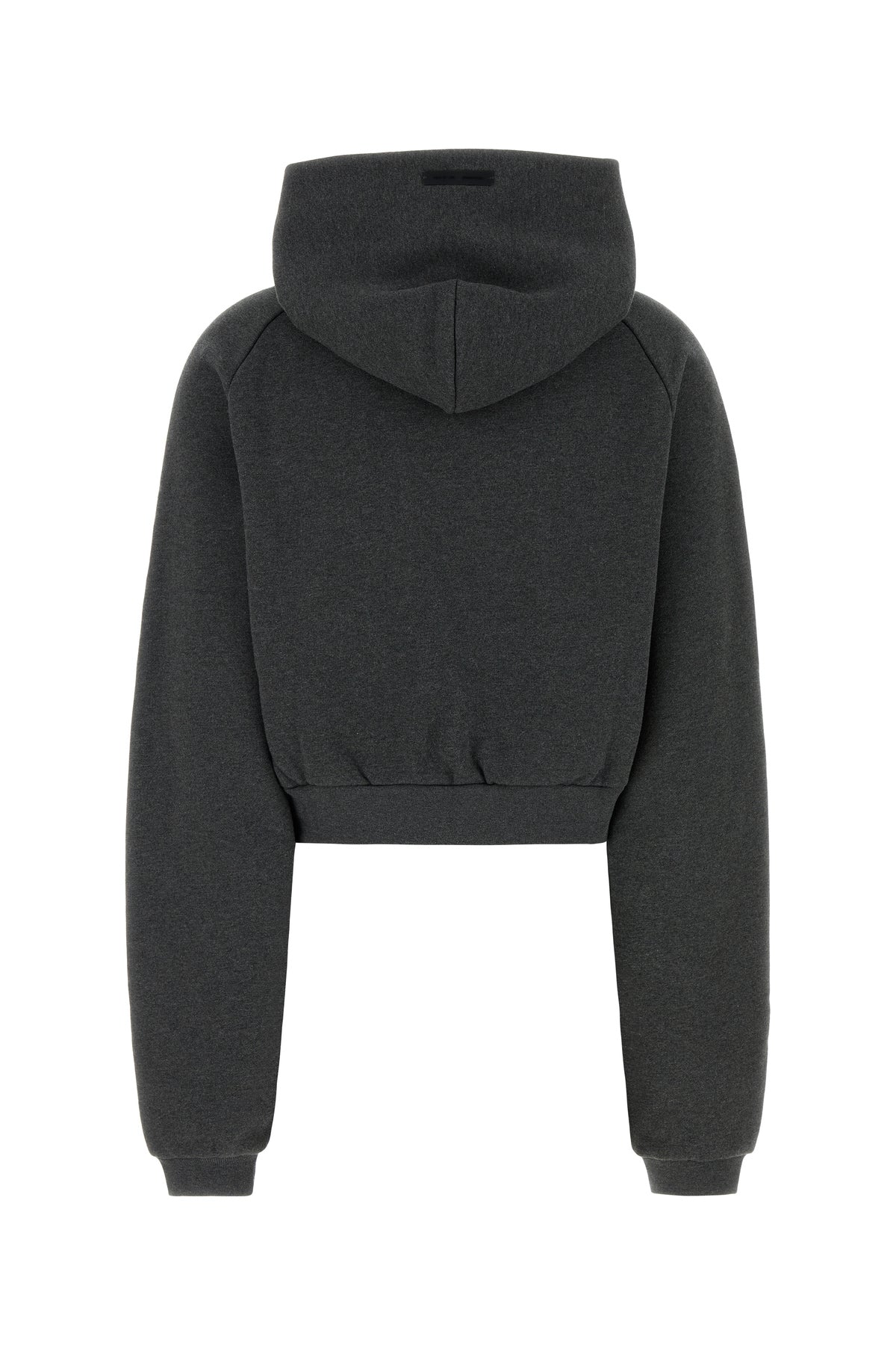 Cropped-cut oversize sweatshirt realized in cotton blend characterized by logo in relief at the front enriched by logoed label on the hood.