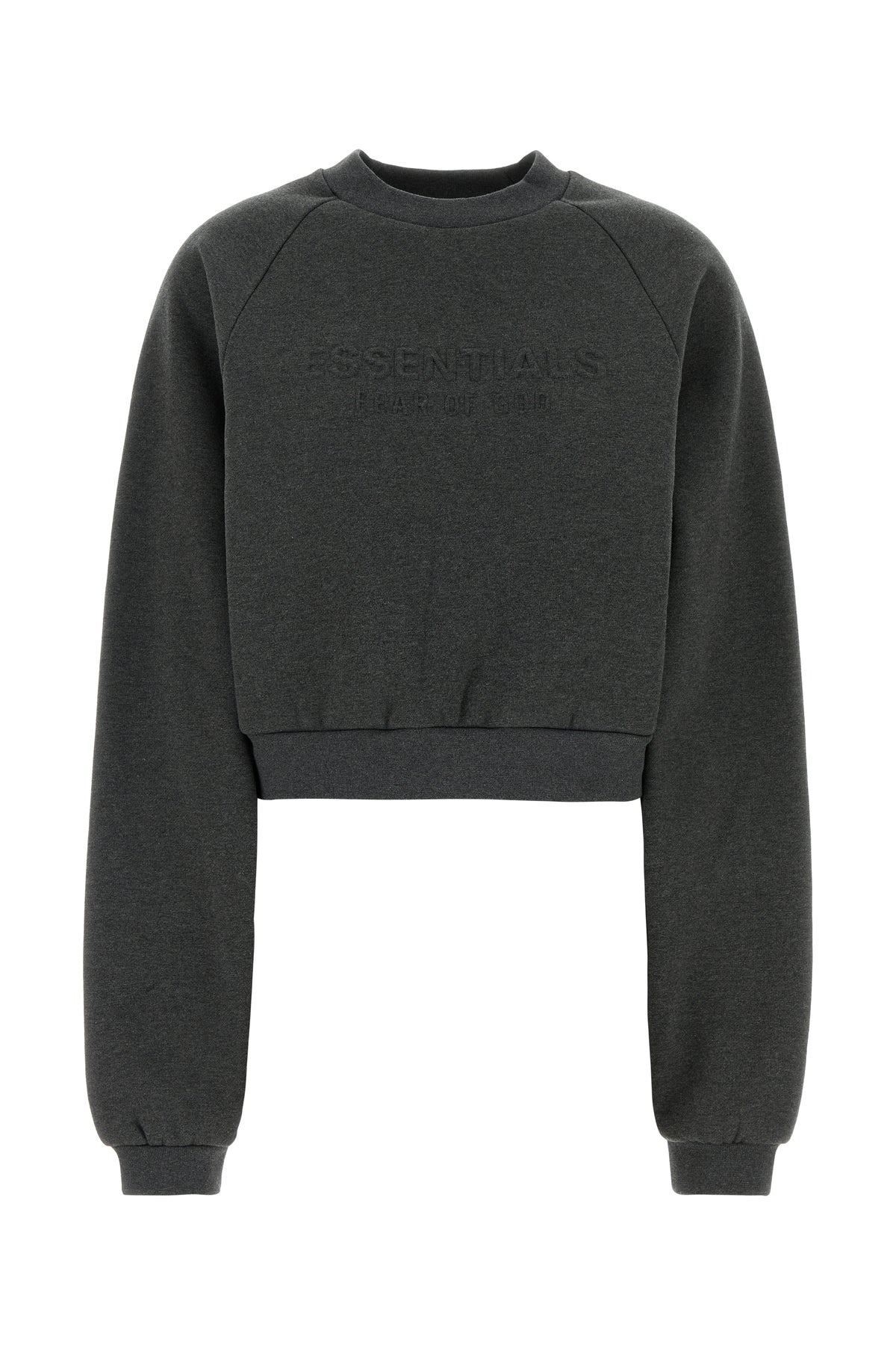 Cropped-cut oversize sweatshirt realized in cotton blend characterized by logo in relief at the front enriched by logoed label at the back.