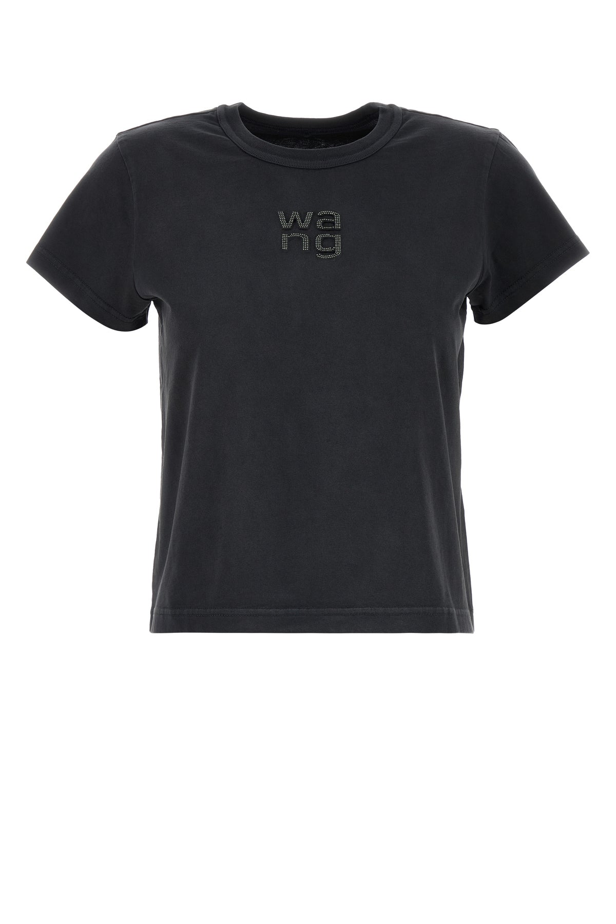 T-shirt realized in pure cotton enriched by rhinestones logo on the chest.