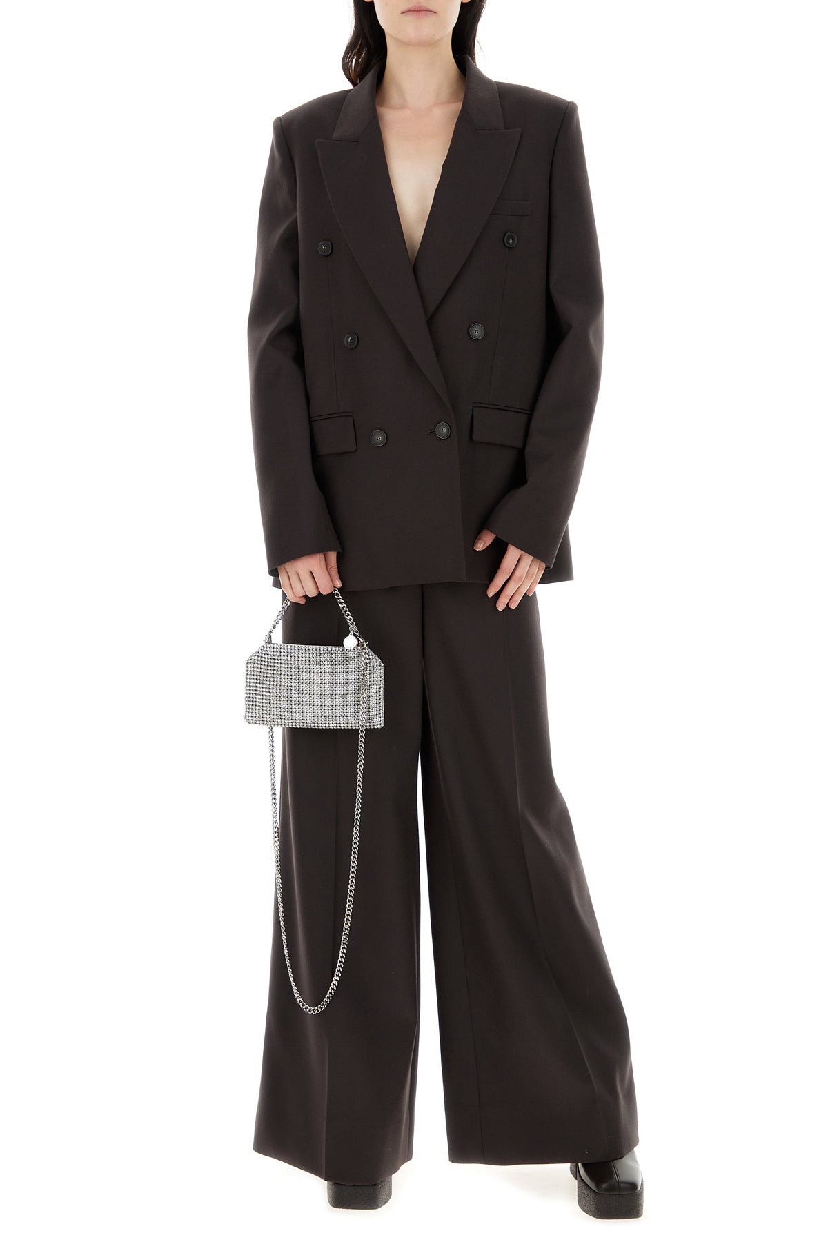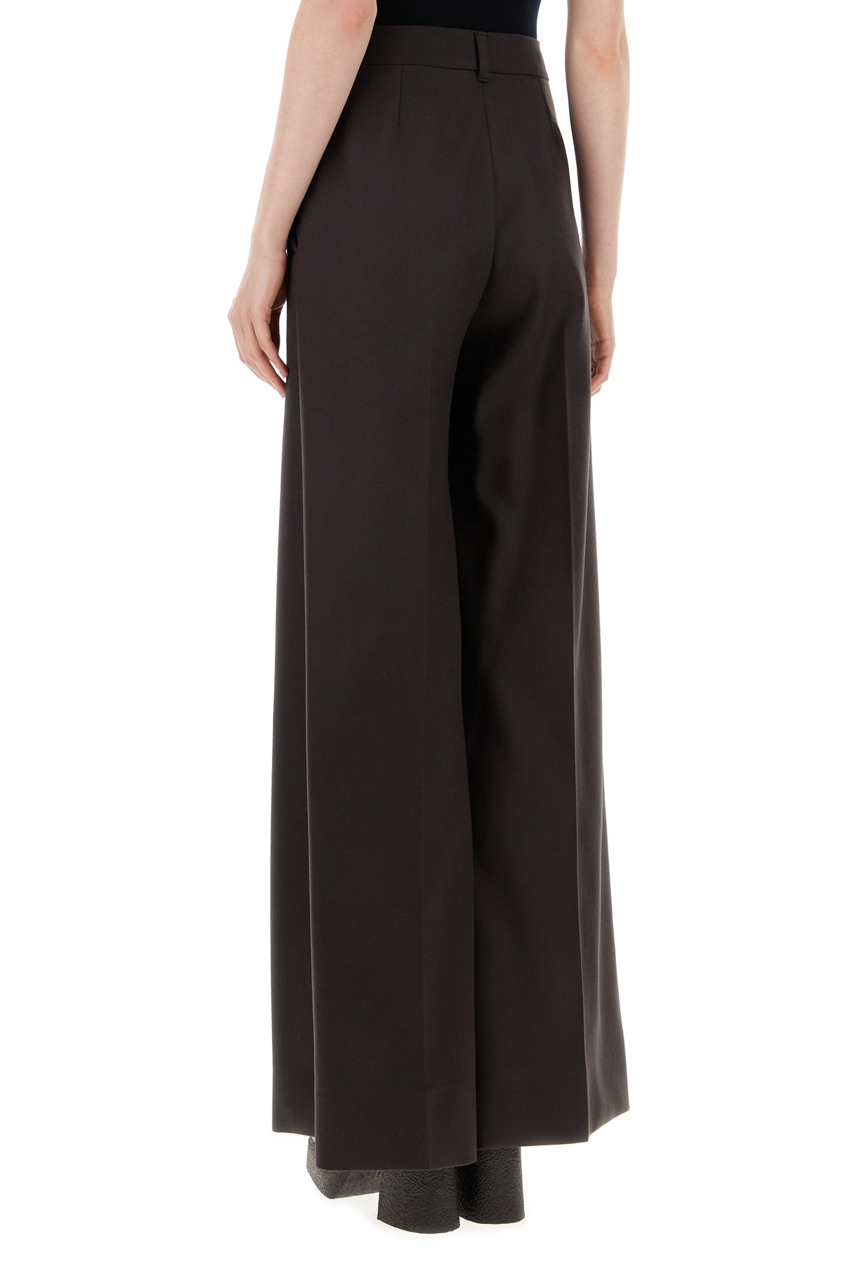Wide-leg pant realized in pure wool flannel characterized by central ironed pleats.