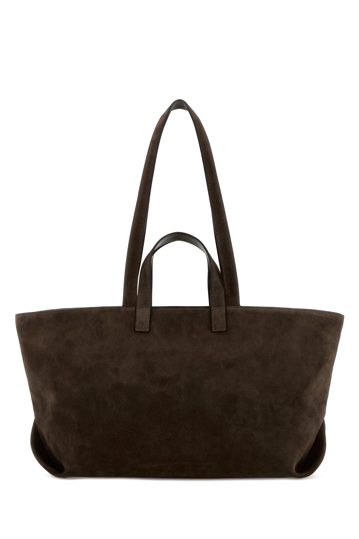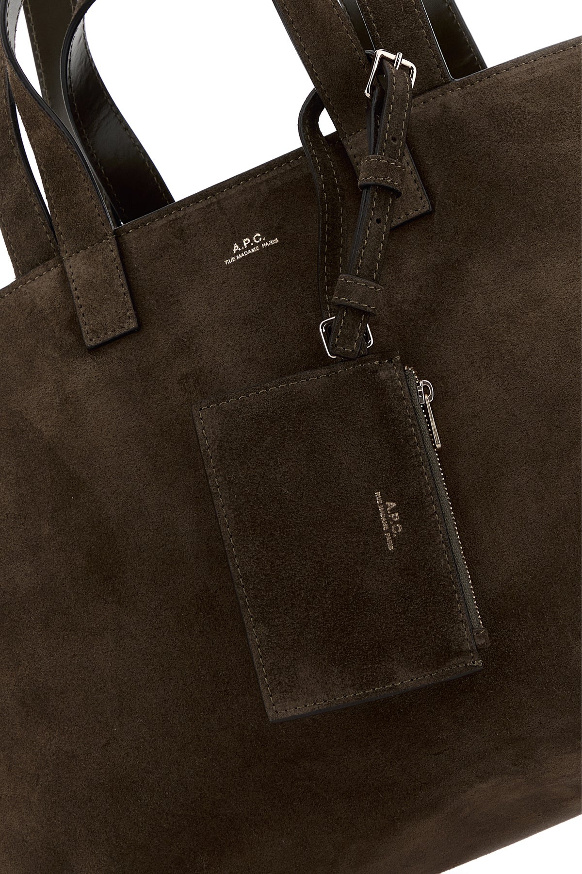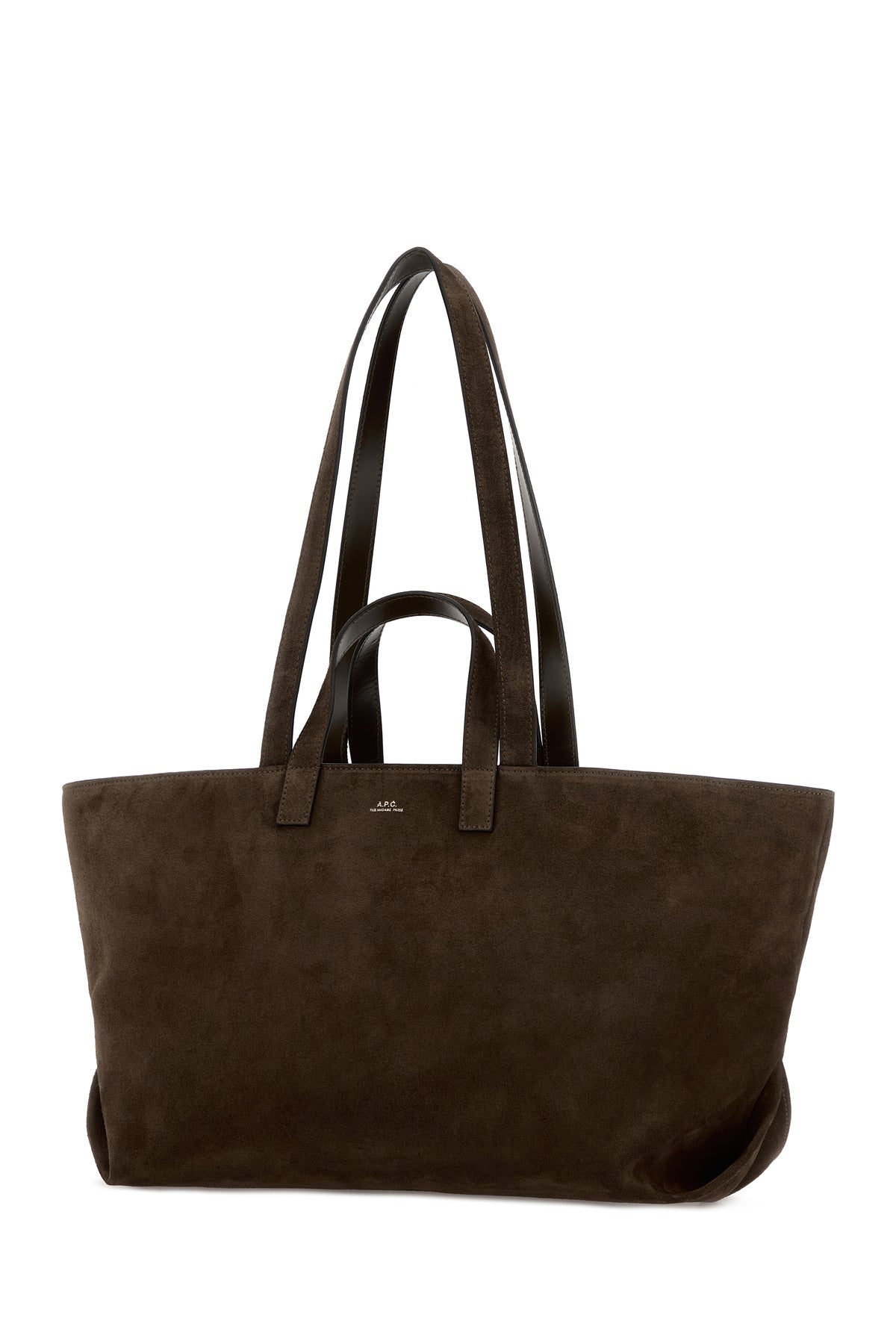 Shopping bag realized in suede characterized by laminated printed logo at the front.