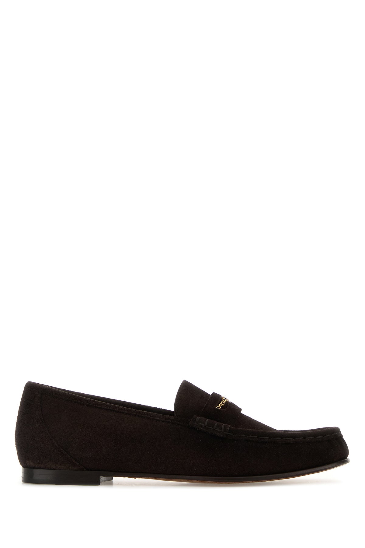 Loafers realized in calf suede enriched by metal lettering logo on the vamp.
