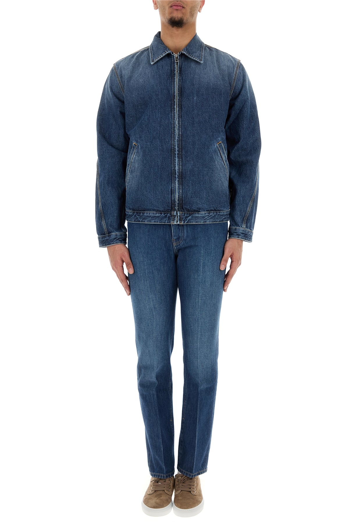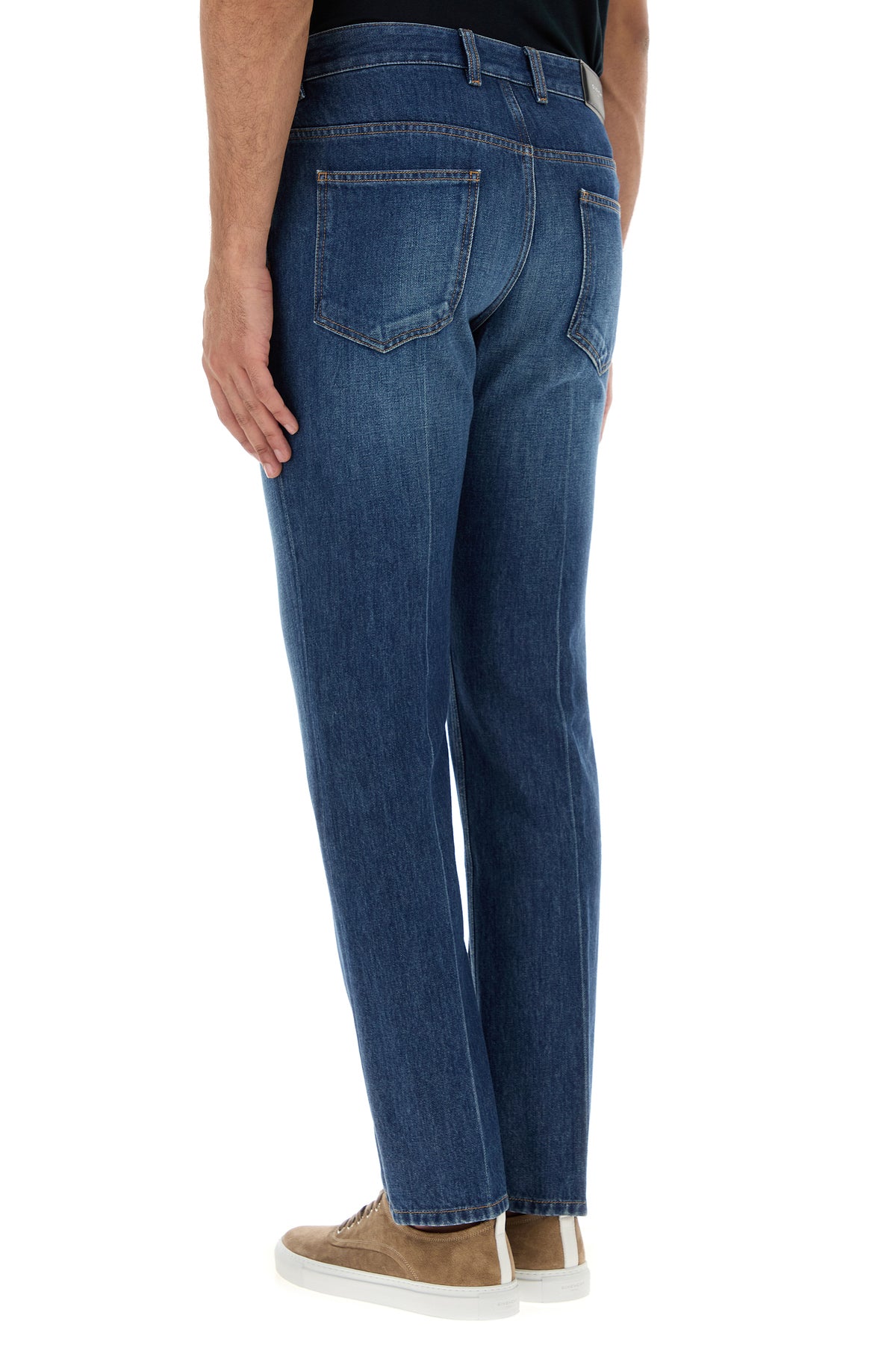 Jeans realized in stonewashed pure cotton denim enriched by logoed label at the back.