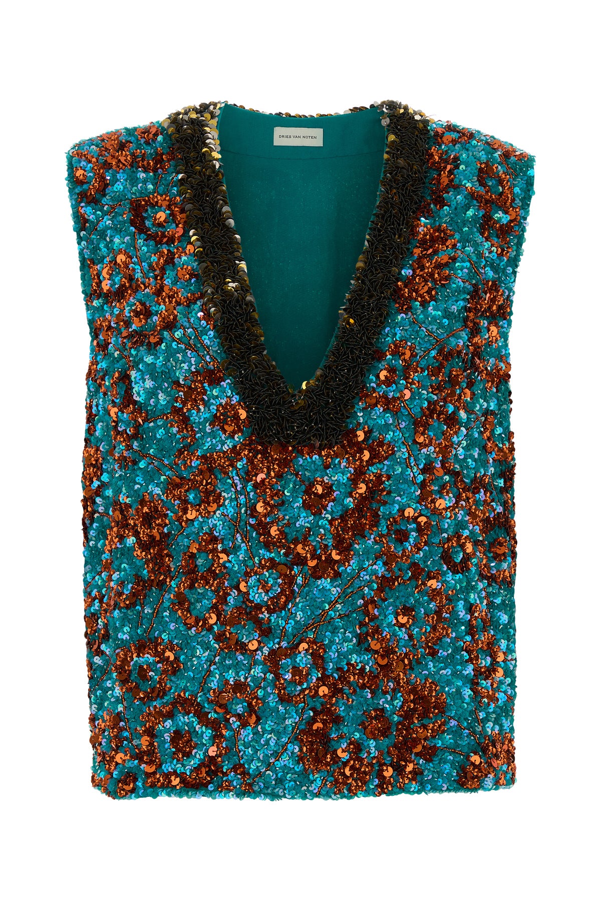 Top realized in viscose crepe entirely covered by floral motif sequins.