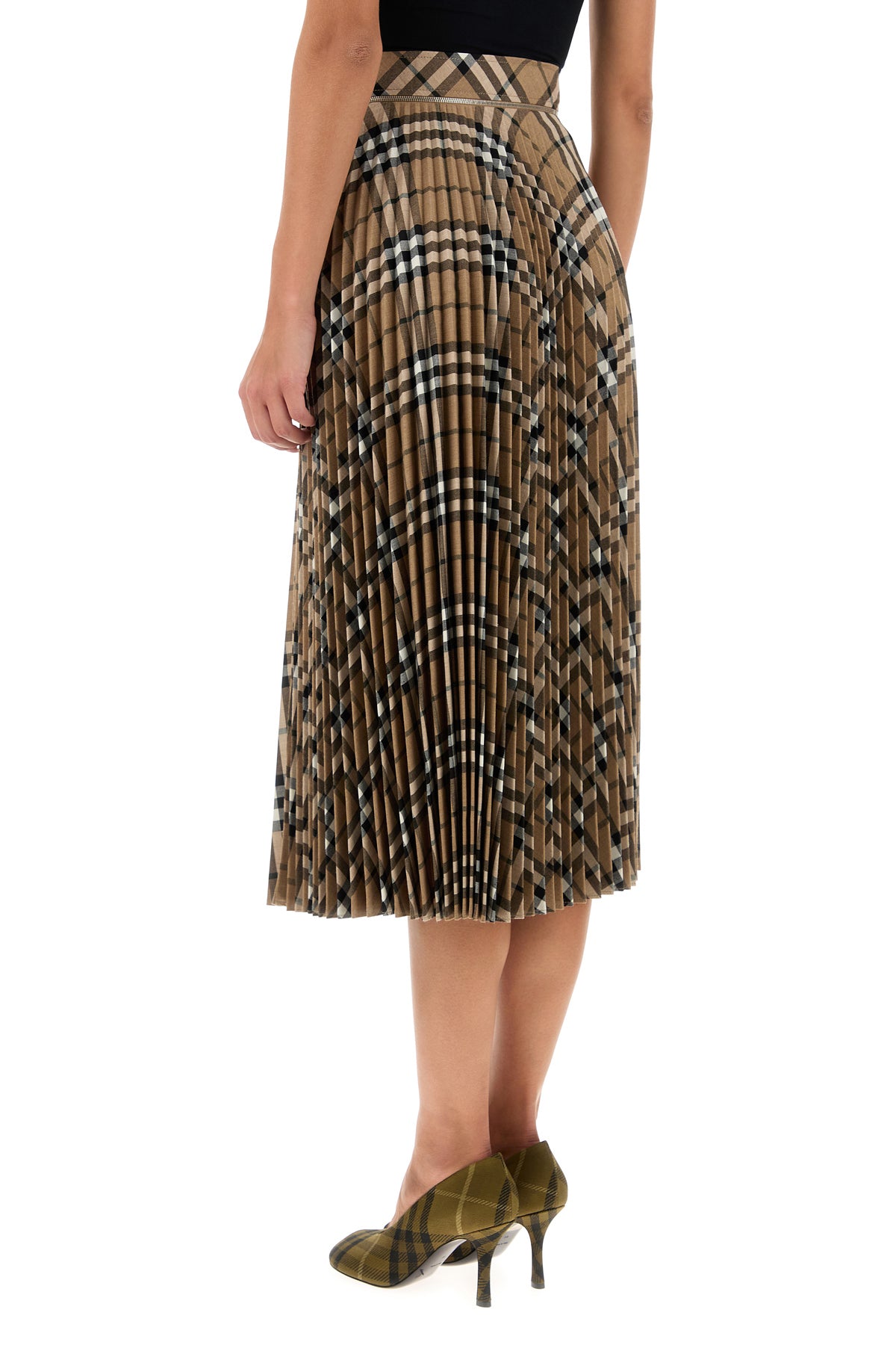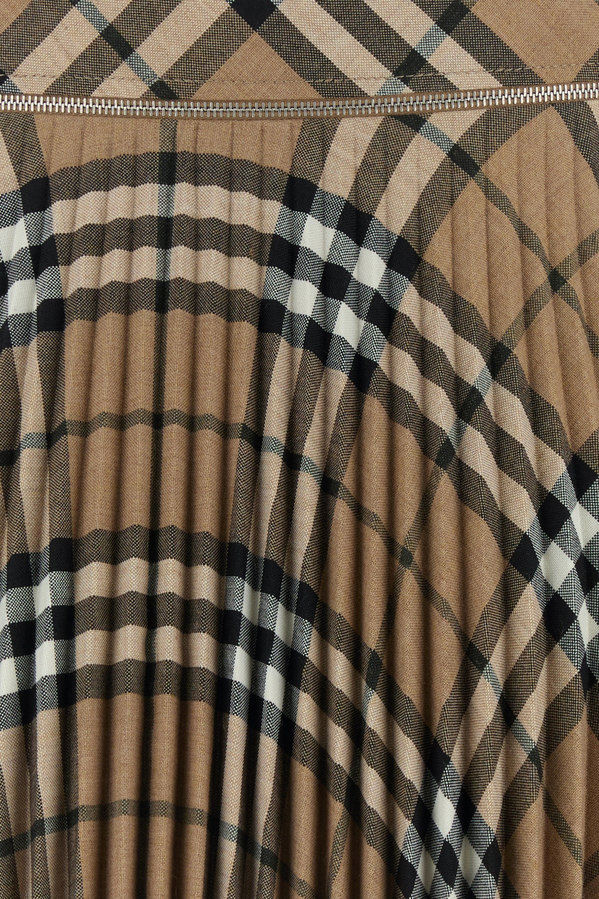 Pleated skirt realized in polyester blend characterized by Burberry Check embroidery on the entire surface.