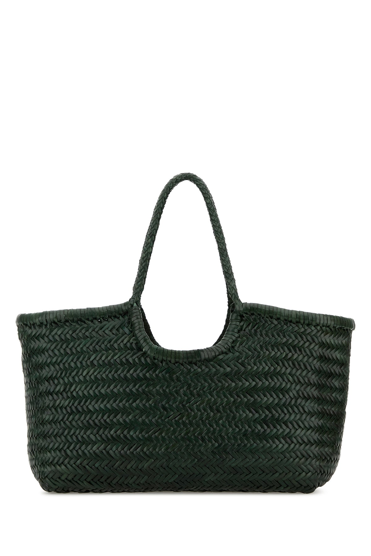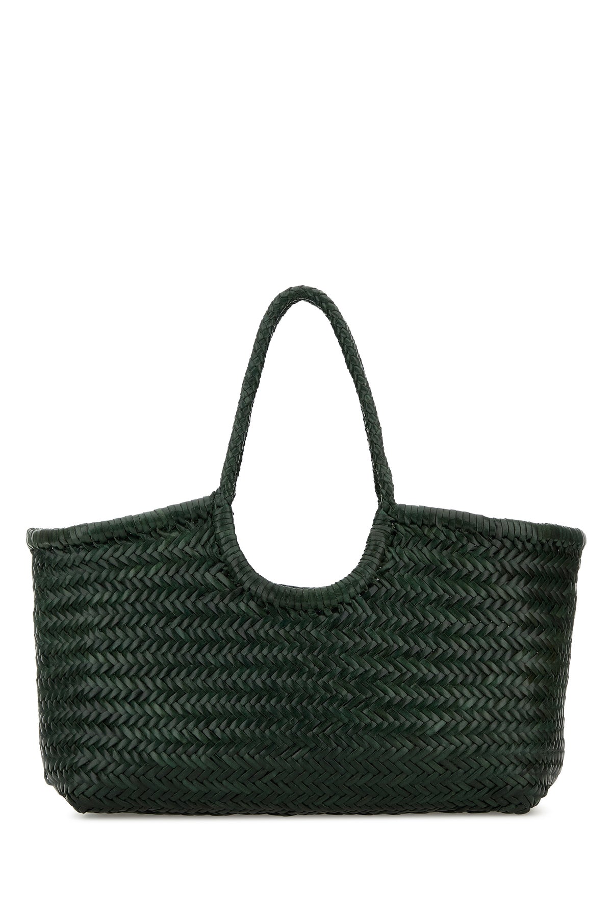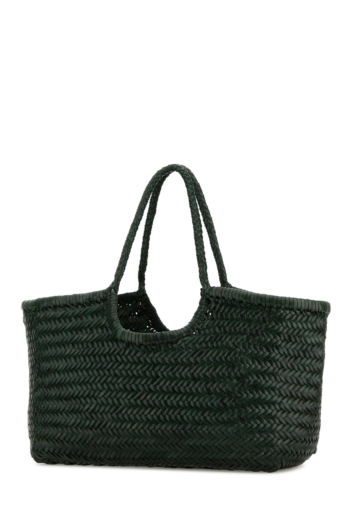Bucket bag realized in woven leather.