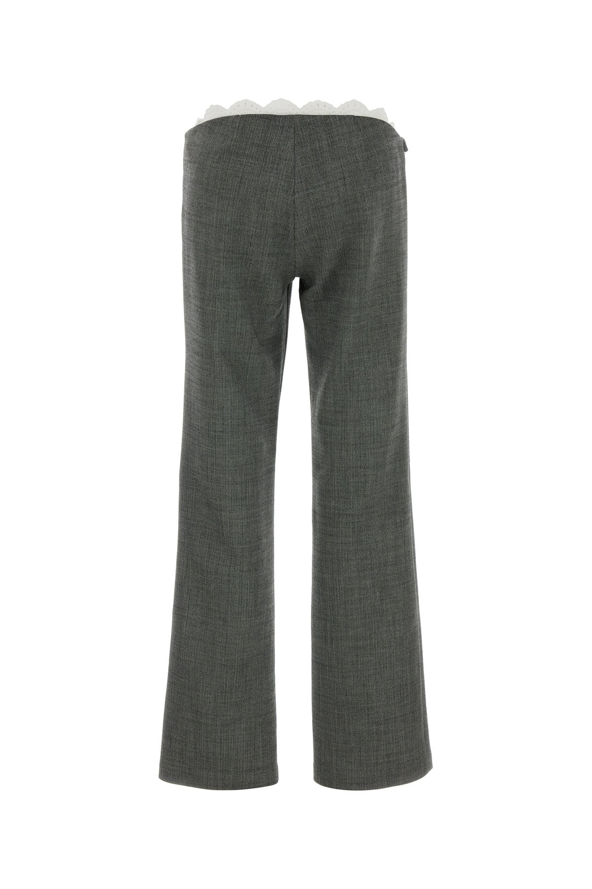 Pant realized in stretch wool enriched by asymmetric lace insert at the waist.
