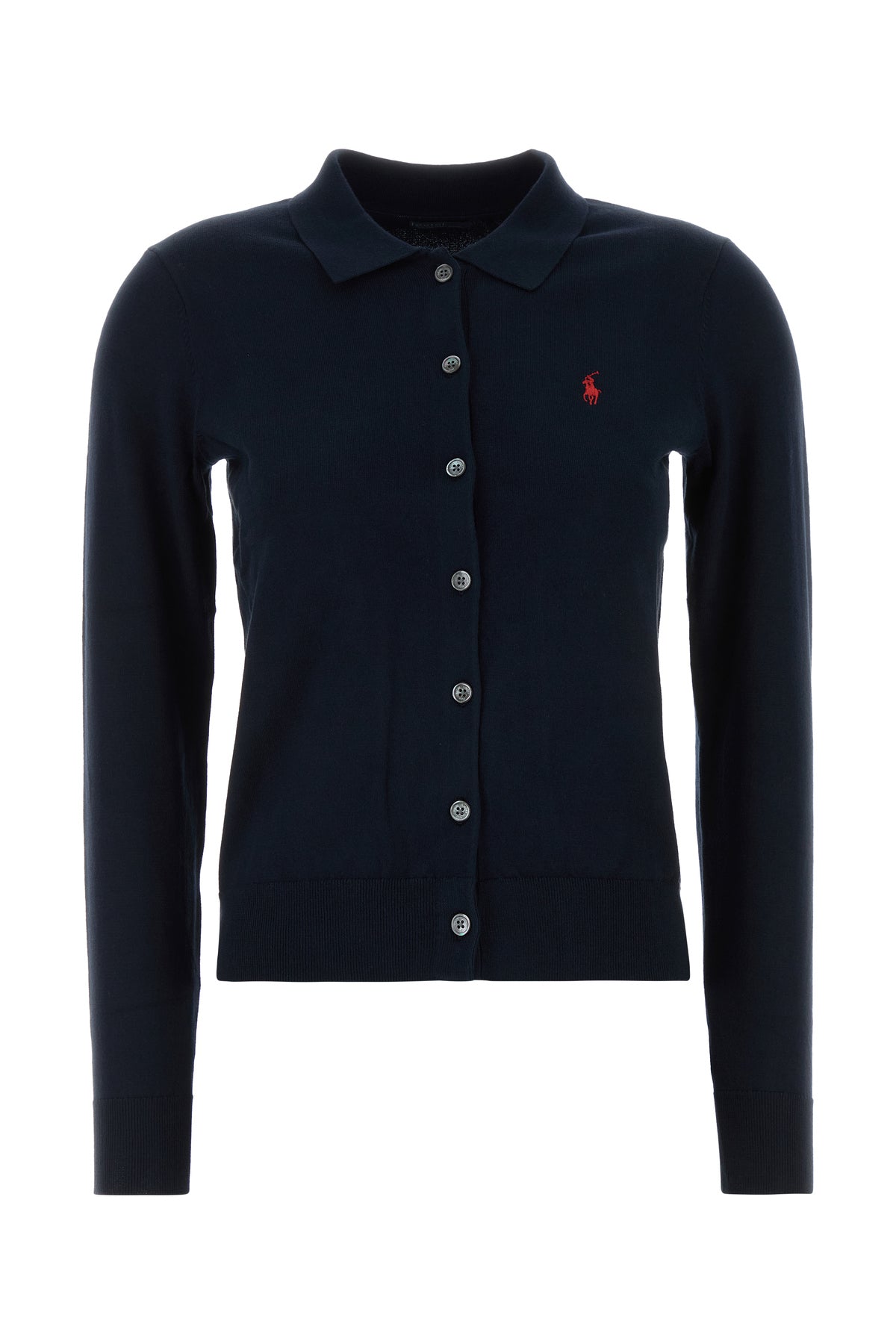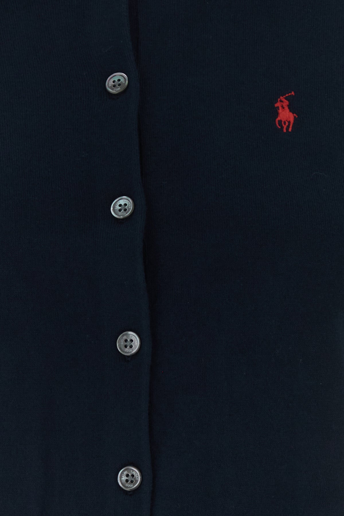 Cardigan realized in stretch cotton blend characterized by iconic embroidered logo on the chest.