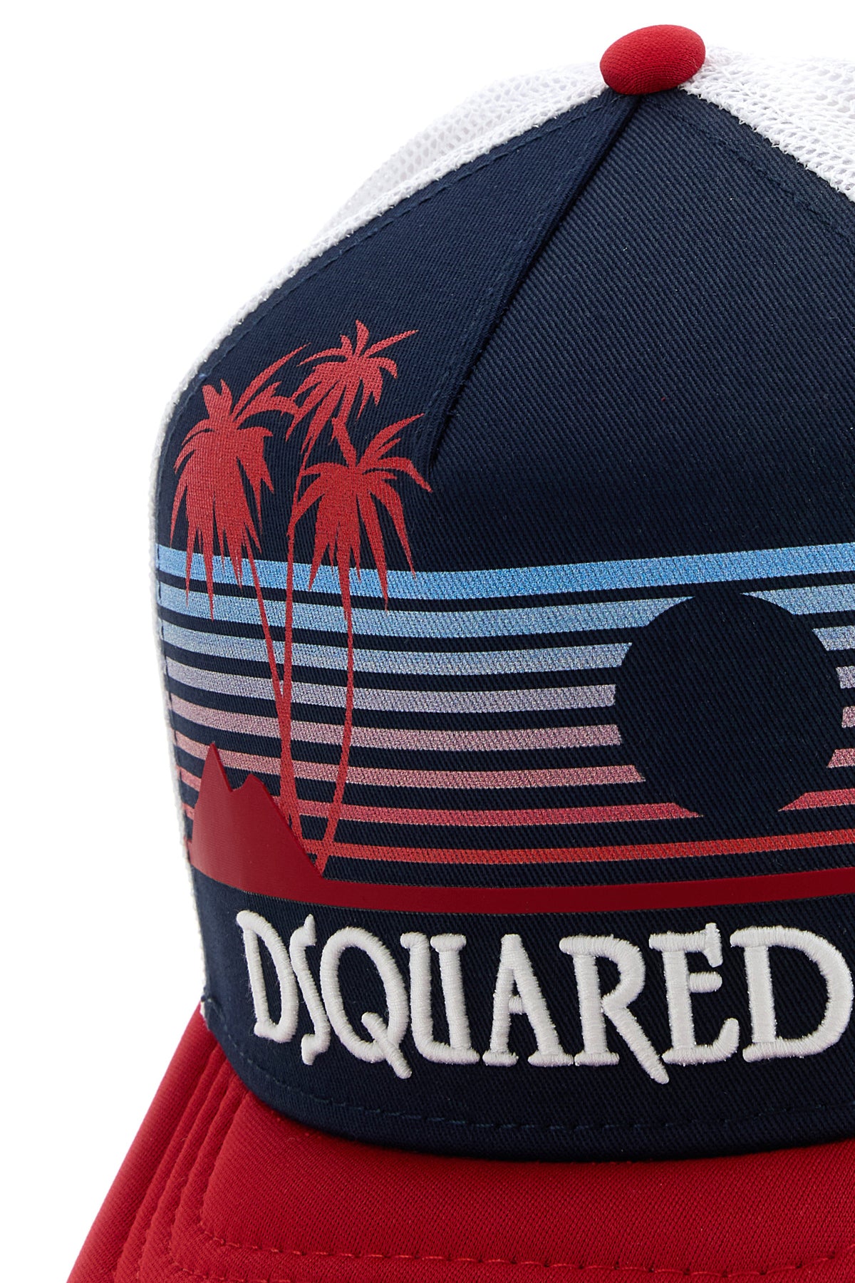 Baseball cap realized in jersey and mesh characterized by peculiar print and embroidered logo at the front and peculiar embroidery at the back.