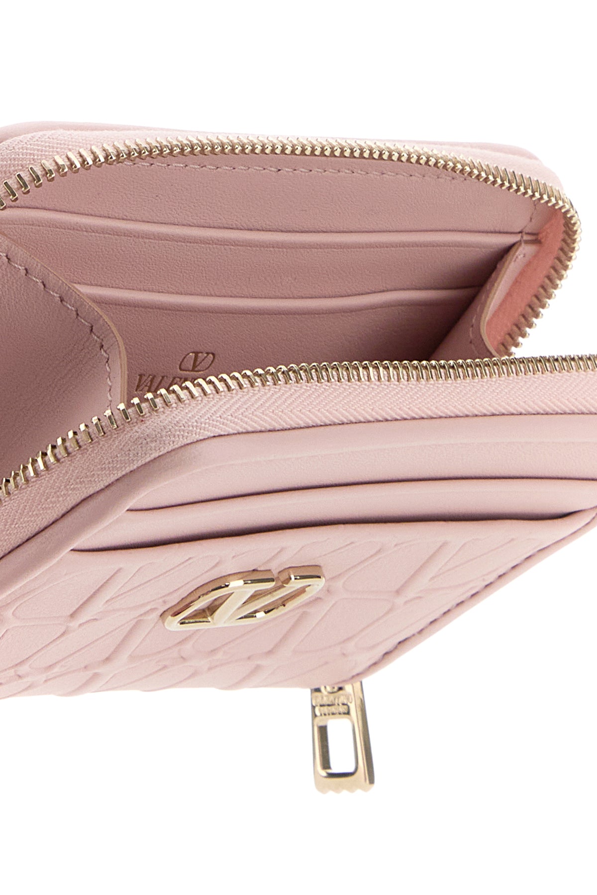 Wallet realized in leather characterized by VLogo Signature in relief on the entire surface enriched by VLogo Signature metal detail at the front.