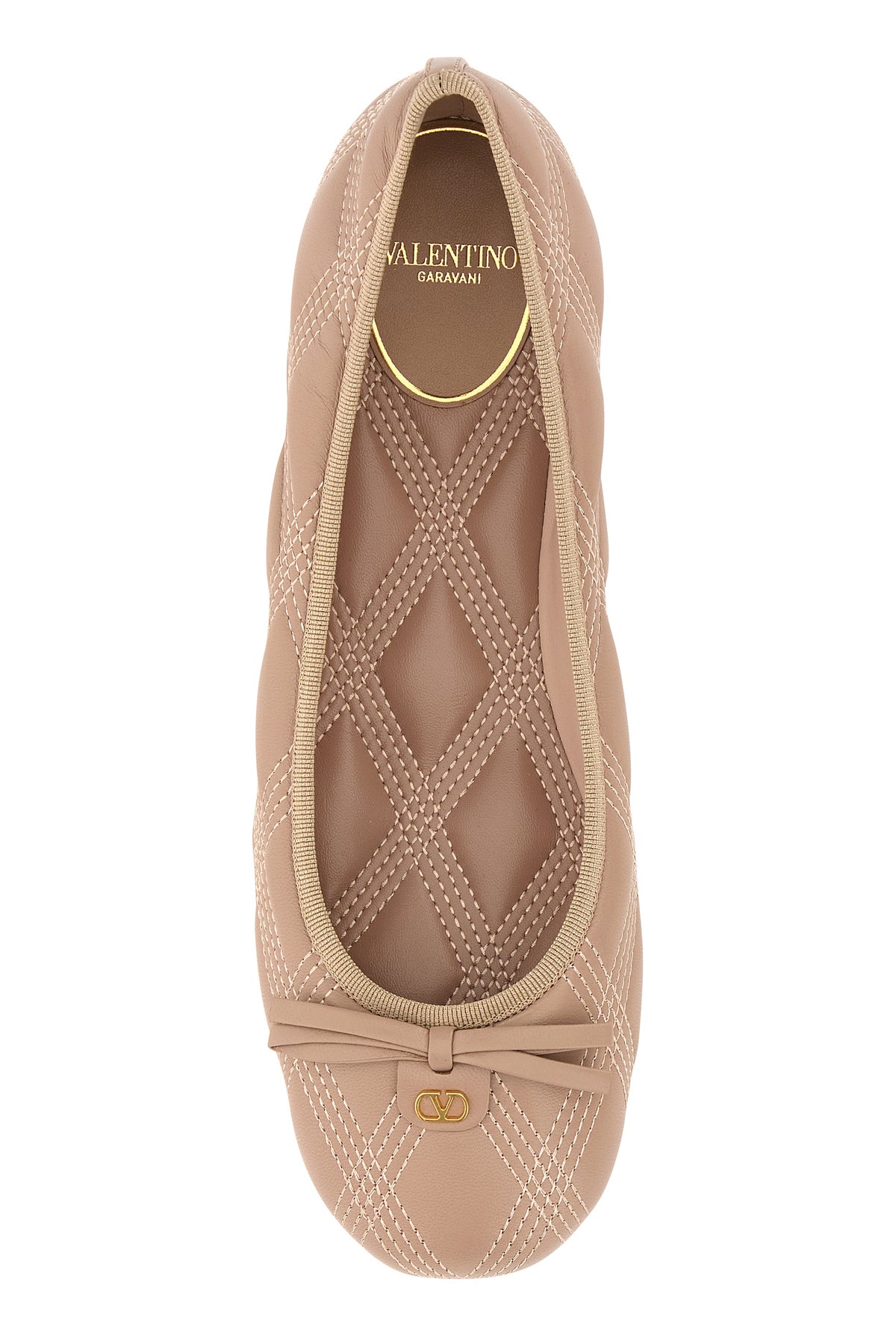 Ballerinas realized in quilted leather enriched by metal VLogo detail and decorative tonal leather bow at the front.