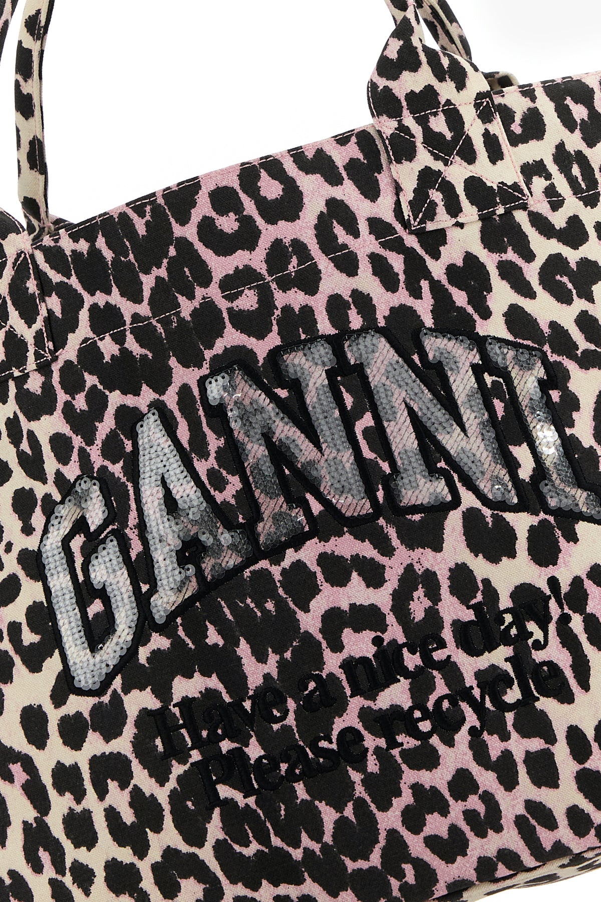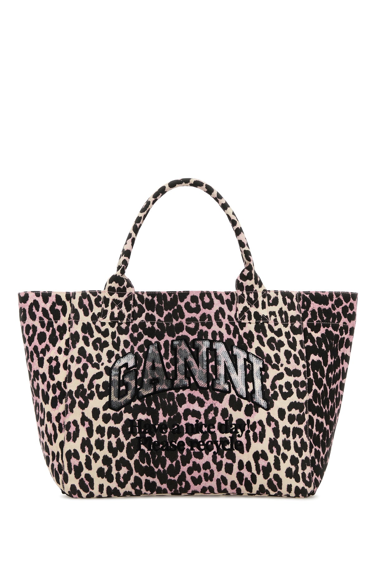 Reversible shopping bag realized in canvas characterized by animal print on the entire surface and logoed embroidery at the front.