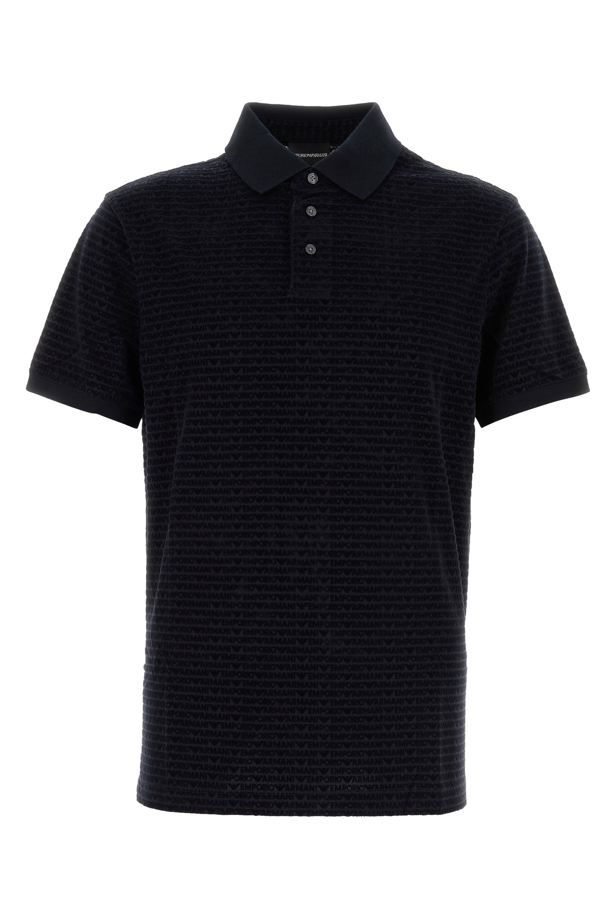 Polo shirt realized in lyocell blend characterized by flocked printed logo on the entire surface.
