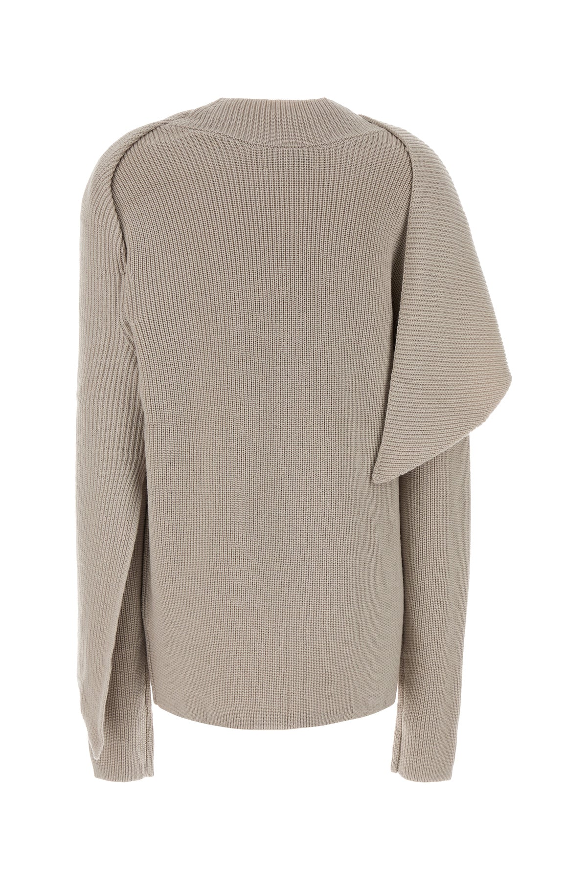 Sweater realized in pure merino wool enriched by fabric insert at the top.