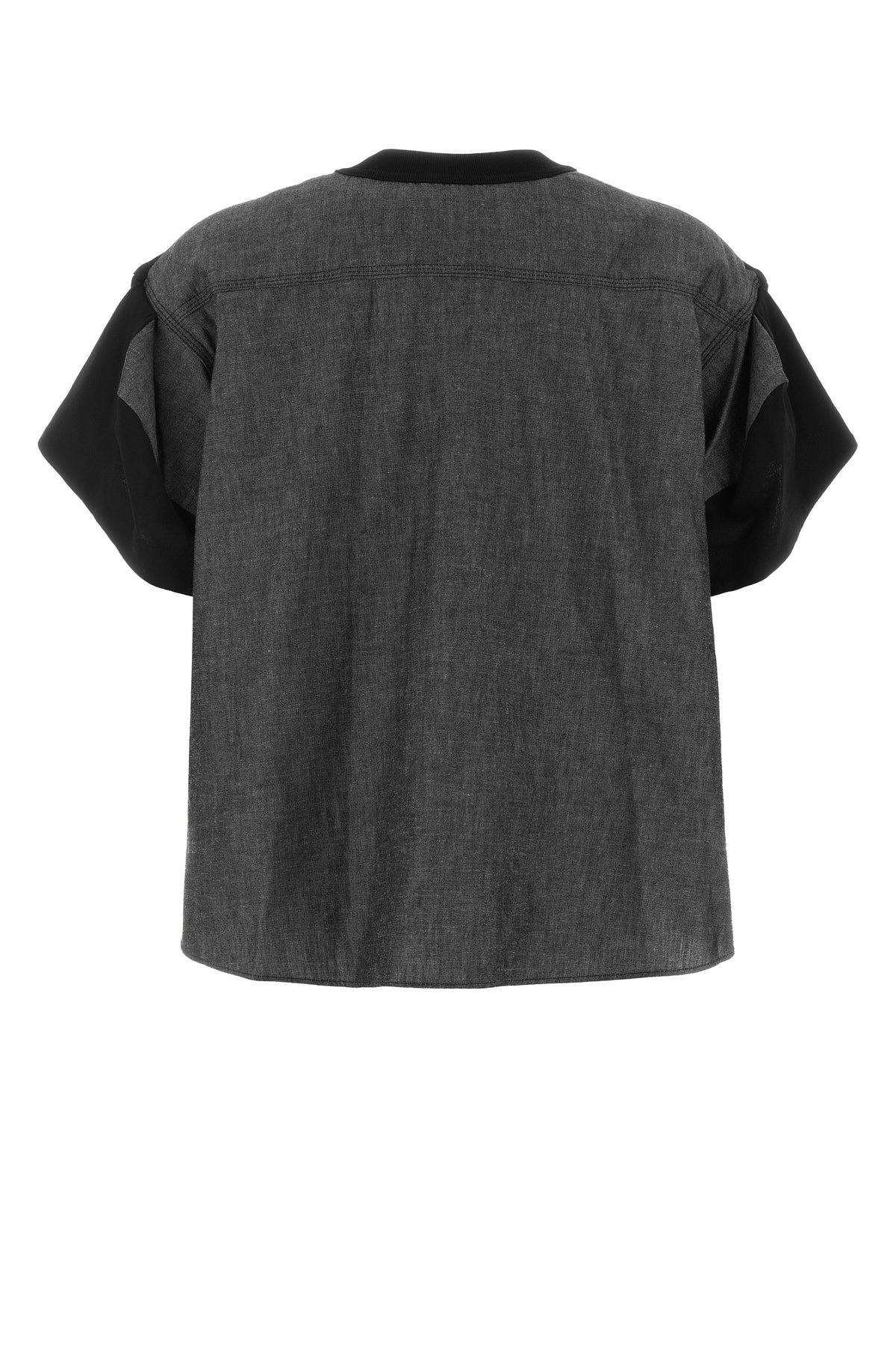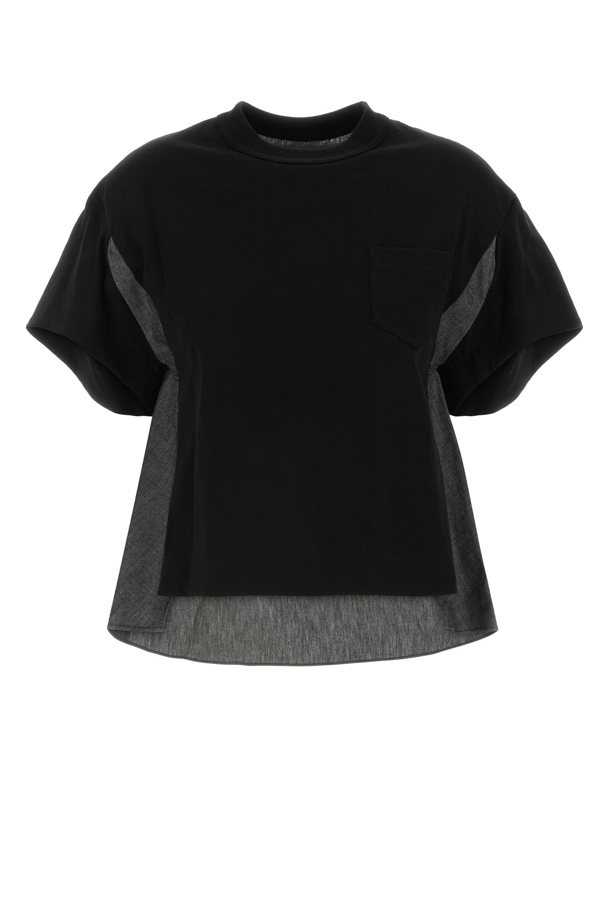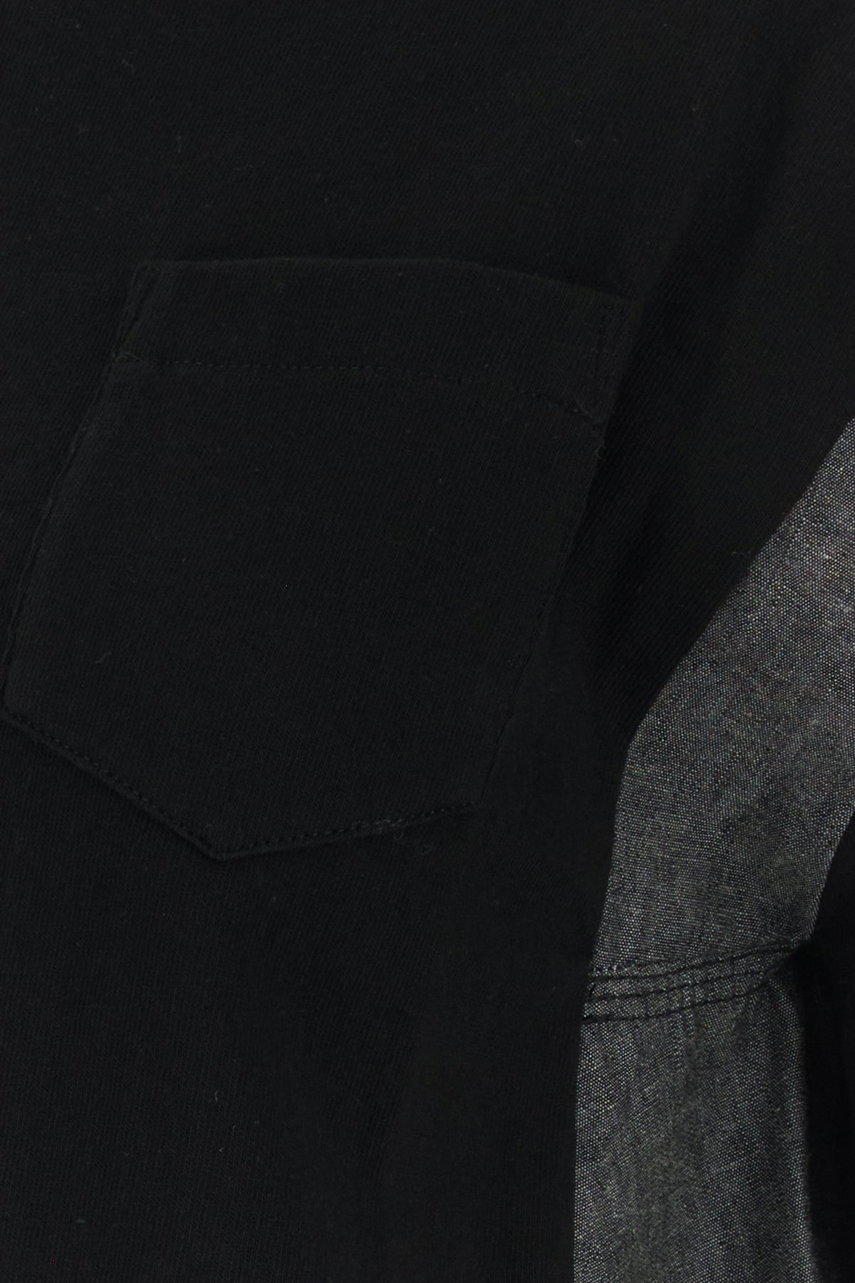 T-shirt realized in denim and jersey characterized by asymmetric hemline.