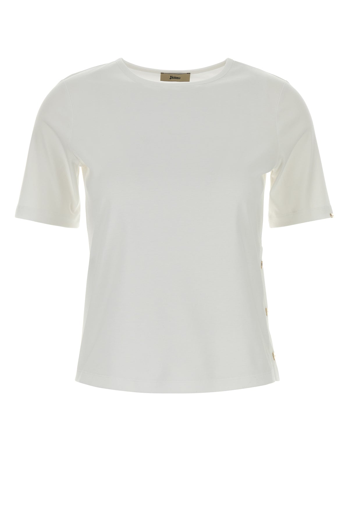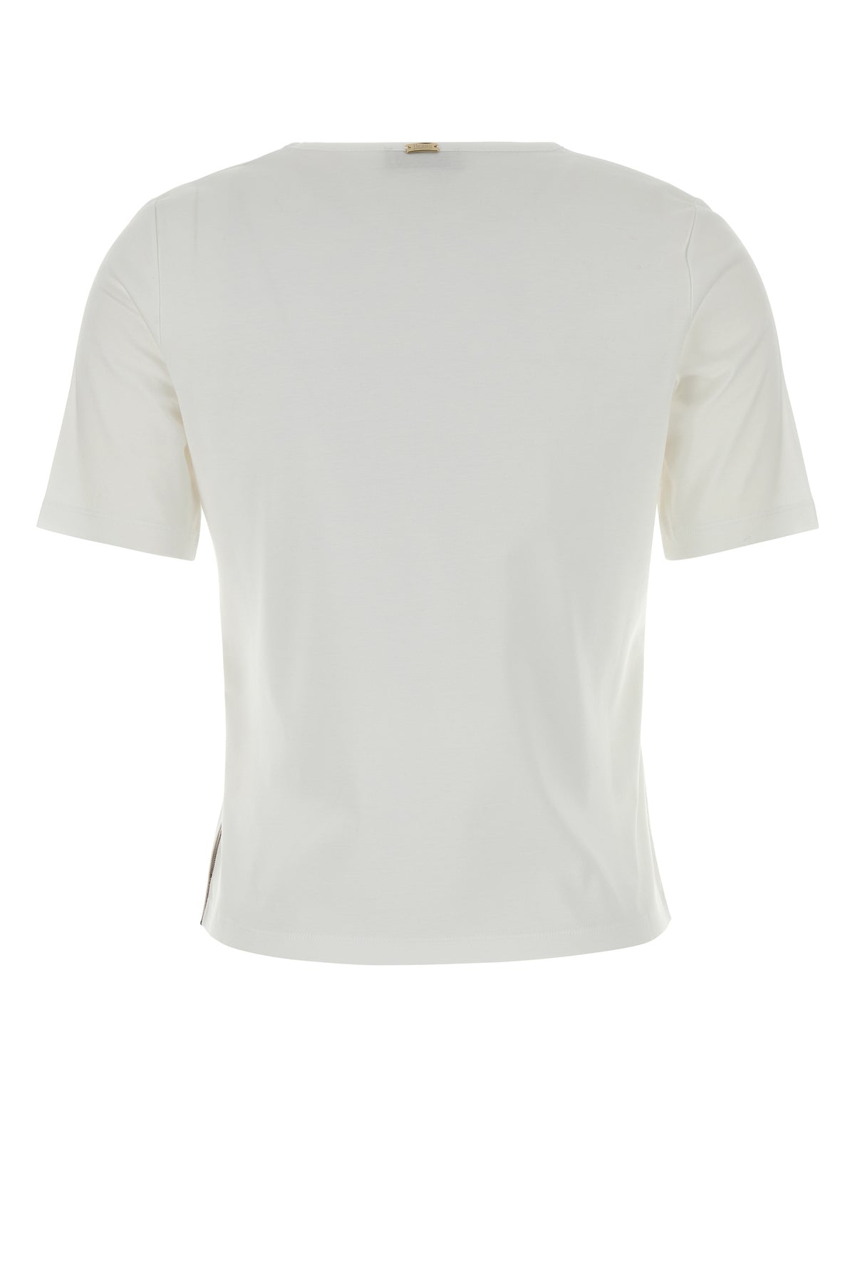 T-shirt realized in pure cotton enriched by logoed metal plate at the back.