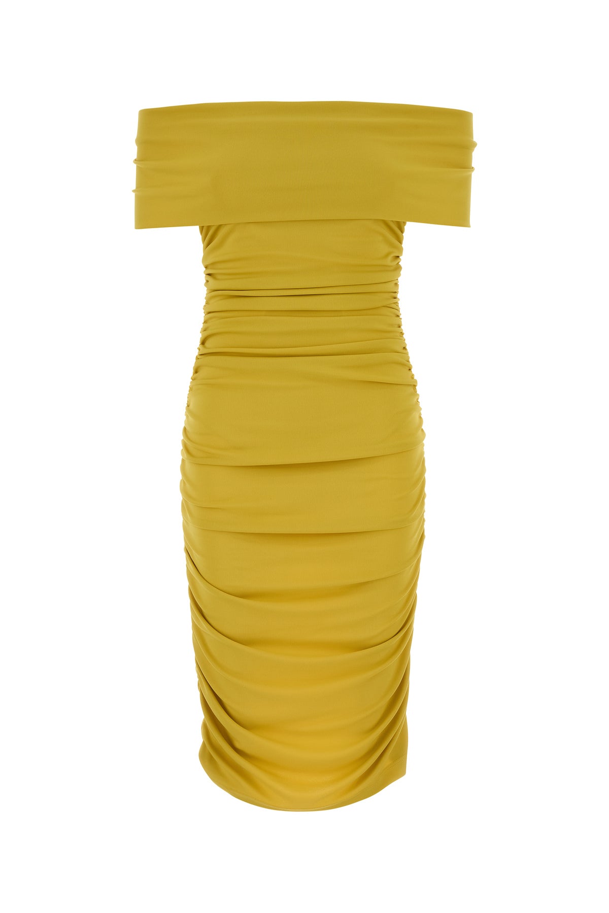 Sleeveless dress realized in jersey characterized by gatherings on the sides.